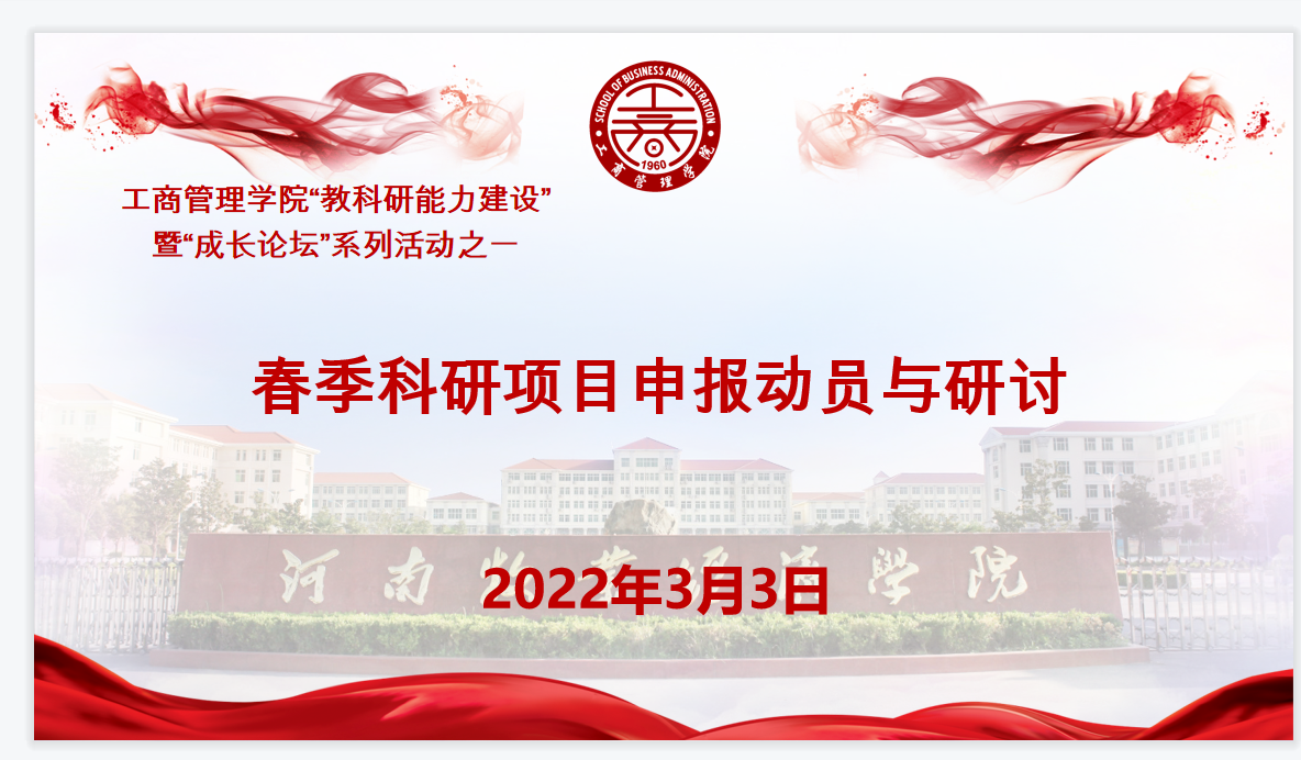 为贯彻落实学校“能力作风建设年”活动精神和工作部署,提升我院教职工科研水平,营造学术氛围,ok138cn太阳集团古天乐于3月3日下午在412会议室举办了“教科研能力建设”暨“成长论坛”系列活动之一“春季科研项目申报动员与研讨活动”。院党委书记王筝、院长贾宪军、王桂朵教授、副院长陈先锋和相关申报教师三十余人参加了此次会议,会议由贾宪军院长主持。