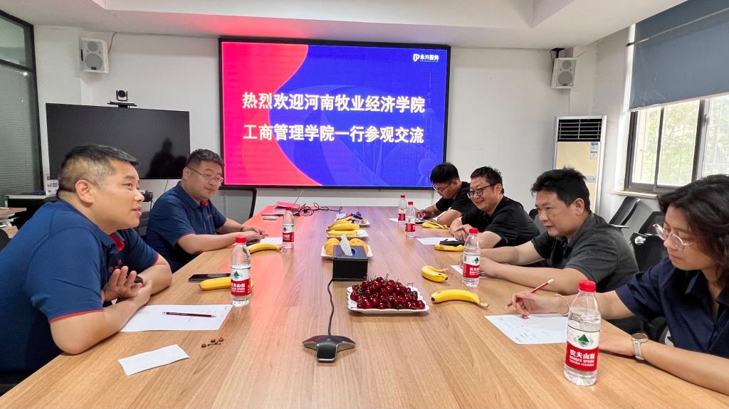 詹珅一行在旭辉永升服务集团中部区域事业部河南公司城市总经理付喜磊、人力行政部长王朝臣的陪同下,实地参观了旭辉永生公司员工办公室、服务场所和党建文化长廊,详细了解公司的服务板块、企业文化、党建等情况。参观结束后,双方在会议室举行校企合作交流会。付经理就公司的经营现状及未来发展、新进员工薪资待遇及晋升渠道、公司管理人员具体要求、智能化管理等方面进行详细介绍。詹珅向旭辉永升公司对我院发展给予的大力支持表示感谢。他从学院专业设置、人才培养方式、2024届和2025届毕业生情况等方面介绍了学院情况。他指出,此次走访调研,一方面是为了深入落实教育部访企拓岗和双百工程要求,进一步加深高校与用人单位之间的联系,为毕业生就业做好事做实事。另一方面也是在2024届毕业生毕业之际和2025届毕业生工作即将启动之际,深入到企业调研全面了解最新用人需求,更好地调整人才培养方案,推动产学研深度融合,更好地促进学院专业的发展和做好2025届毕业生启动工作。
