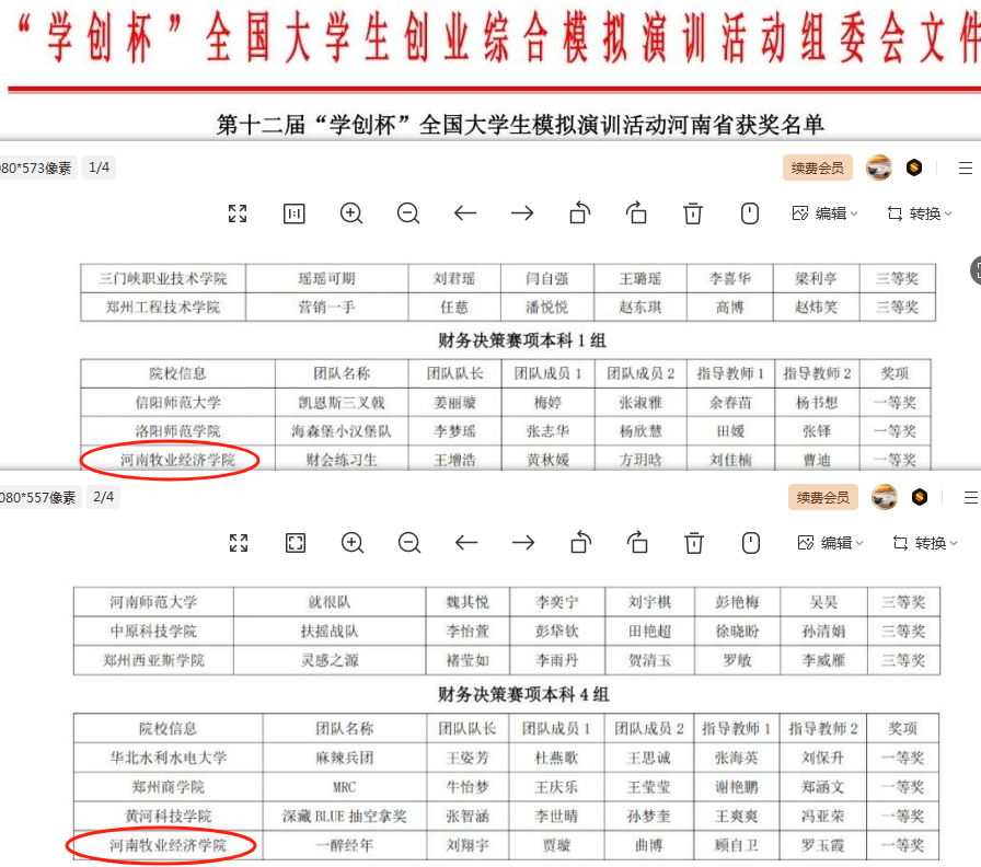 近日,由高等学校国家级实验教学示范中心联席会经济与管理学科组、中国陶行知研究会主办的第十二届“学创杯”全国大学生创业综合模拟大赛河南省选拔赛组委会公示了大赛成绩,在创业综合赛项、数字营销赛项、财务决策(本科、专科两个赛道)赛项中共斩获一等奖2项、二等奖4项、三等奖4项。本次河南省选拔赛,于2025年5月24-25日在线上进行。