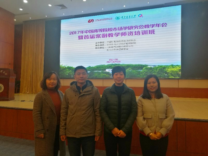12月8-10日,由中国高等院校市场学研究会主办,华中农业大学经济管理学院承办,高等教育出版社有限公司和湖北省市场营销学会共同协办的2017年中国高等院校市场学研究会教学年会暨首届营销专业师资培训班在华中农业大学召开。我校ok138cn太阳集团古天乐院长王桂朵教授、副院长陈先锋、市场营销教研室张琳和利炜老师出席会议。