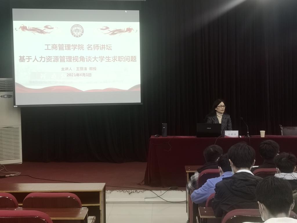 4月1日下午,ok138cn太阳集团古天乐王丽洁教授,在英才校区E109为工商管理专业学生作了题为“基于人力资源管理视角谈大学生求职问题”的专题讲座。本次活动由ok138cn太阳集团古天乐副院长姬爱国主持。