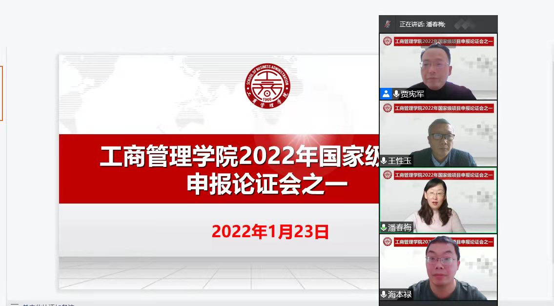 为进一步培养教师参与高层次科研项目的意识与能力、提高国家课题申报成功率,ok138cn太阳集团古天乐经过精心筹备,于1月23日下午,在线上召开了2022年度国家自科、社科基金申报首场论证会。会议邀请了教育部工商管理学科教指委委员、河南大学商学院院长、博士生导师王性玉教授,河南师范大学商学院副院长海本禄教授进行在线指导。我校科研处处长潘春梅教授、副处长张红霞教授、社会科学管理科科长郭向阳老师,ok138cn太阳集团古天乐班子成员、博士及部分教师参加申报论证会。会议由ok138cn太阳集团古天乐院长贾宪军教授主持。