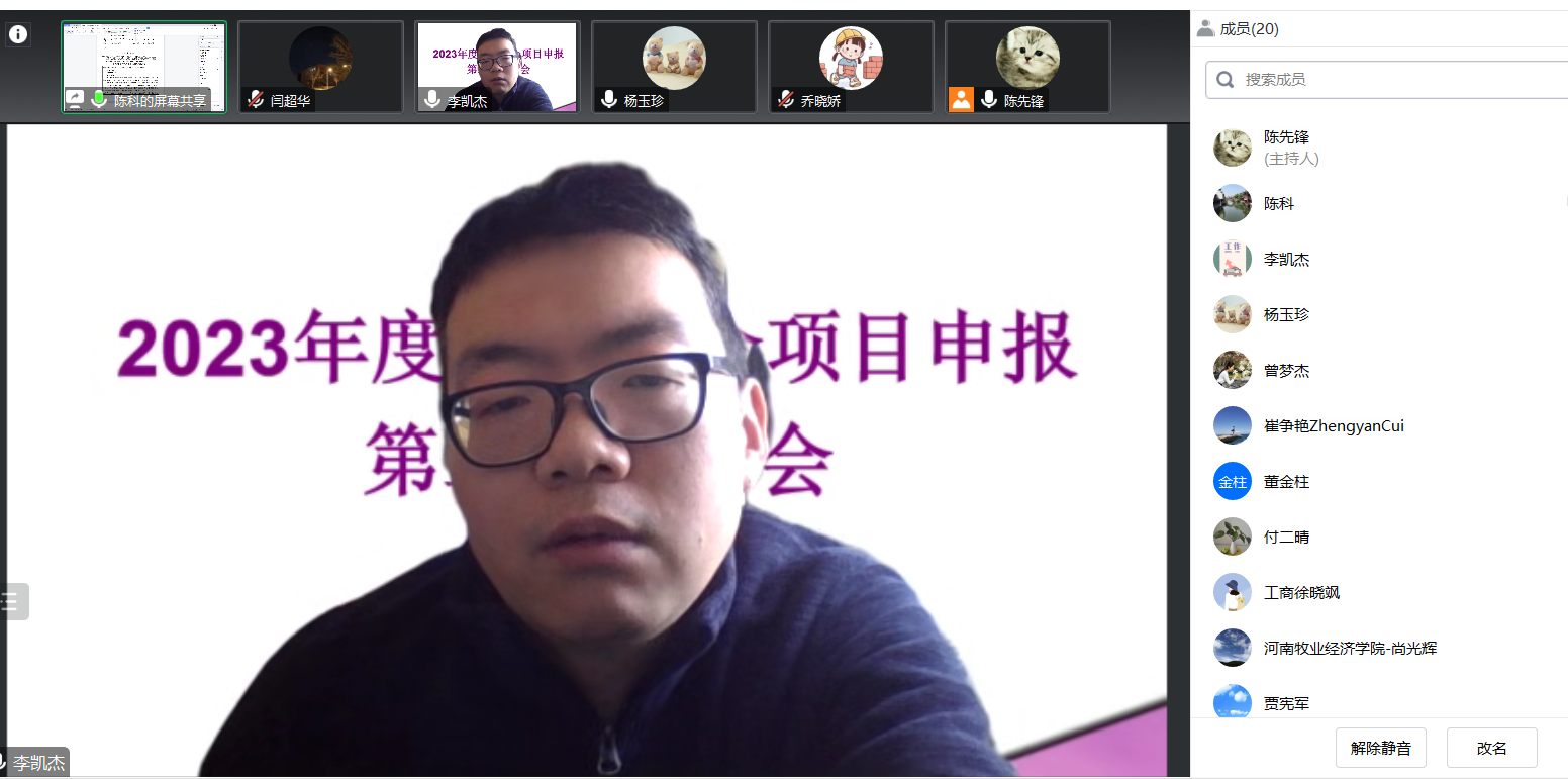 为进一步提升老师们的科研水平,提高国家基金项目申报质量,2月3日上午,ok138cn太阳集团古天乐“成长论坛”暨2023年度国家基金项目申报第二轮论证会于线上举行。本次论证会邀请河南师范大学人力资源部部长、商学院原院长杨玉珍教授、天津理工大学管理学院副教授、保险学系系主任乔晓娇博士和河南财经政法大学副教授、《经济经纬》编辑部副主任李凯杰博士三位专家在线指导。ok138cn太阳集团古天乐全体博士及学院和我校其他部门部分教师参加论证会。论证会由ok138cn太阳集团古天乐副院长陈先锋主持。