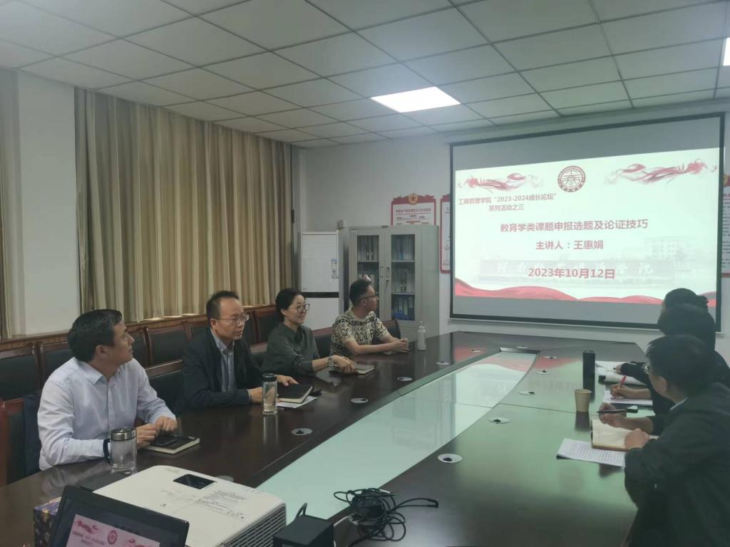 为提升我院教职工科研水平,营造学术氛围,推动学院科研工作高质量发展,ok138cn太阳集团古天乐于10月12日下午在教学楼412会议室举办“2023-2024成长论坛”系列活动之三——“教育类课题申报选题及论证技巧”专题讲座。本次活动邀请河南省教育科学规划办公室王惠娟主任主讲,院长贾宪军、副院长陈先锋、博士、教授及相关申报教师二十余人参加了此次会议,会议由贾宪军教授主持。