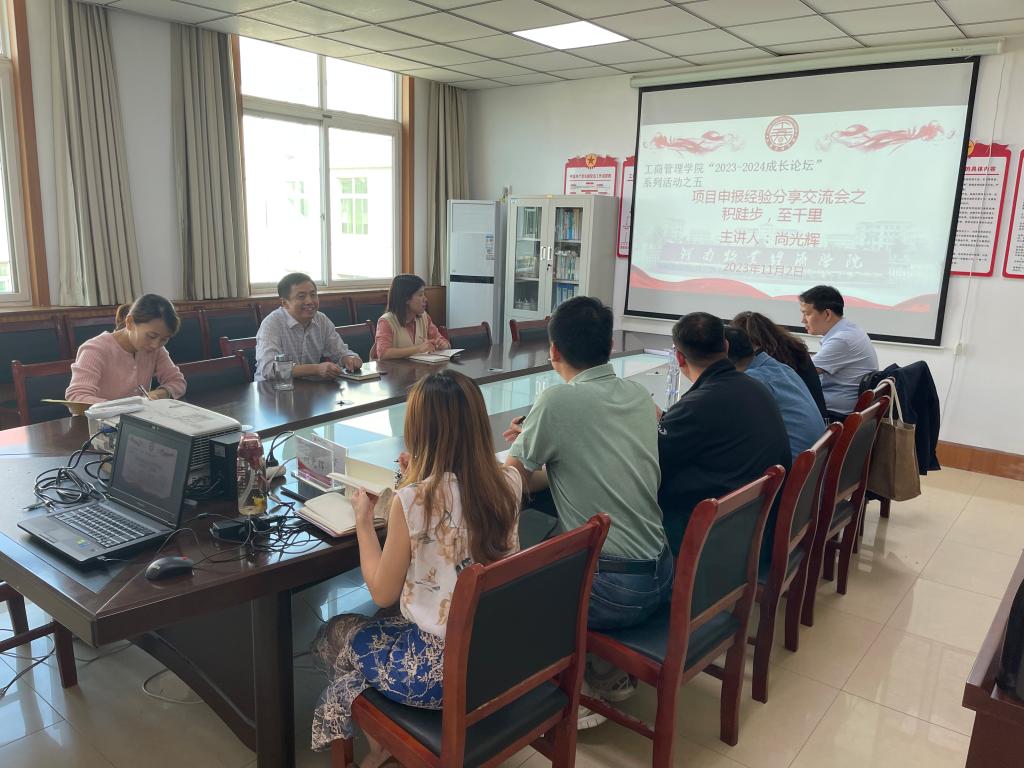 首先,尚光辉博士以“积跬步,志千里”为题,分别从学术与课题、积跬步、志千里三个方面,与大家分享了自己博士毕业后入职我校以来,基金项目申报的心得体会。接着,吕梦博士以“河南推动中医药业振兴的思路与对策研究”为题,分享了自己中标河南省哲学社会科学规划决策咨询项目的经验与体会。