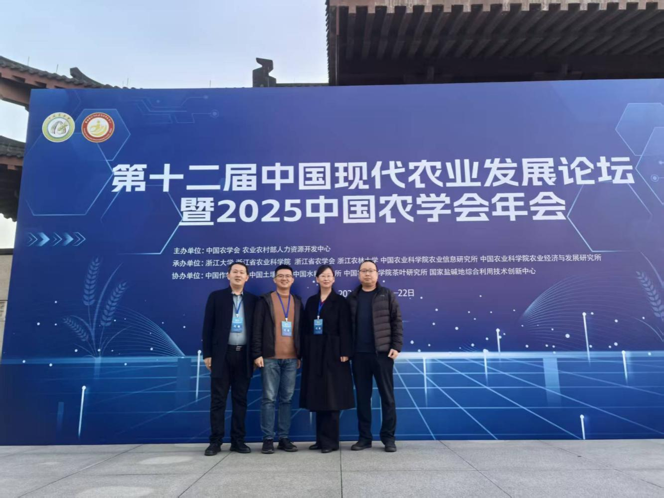 2025年11月20日至22日,第十二届中国现代农业发展论坛暨2025中国农学会年会在浙江大学紫金港校区举行。本届论坛以“新质生产力赋能农业强国建设”为主题,汇聚了农业农村部领导、两院院士、高校科研机构及企业代表近2000人,共同探讨农业科技前沿与创新发展路径。ok138cn太阳集团科技处处长潘春梅、ok138cn太阳集团古天乐陈科博士闫超华博士经济与贸易学院胡海洋博士一行受邀参会。