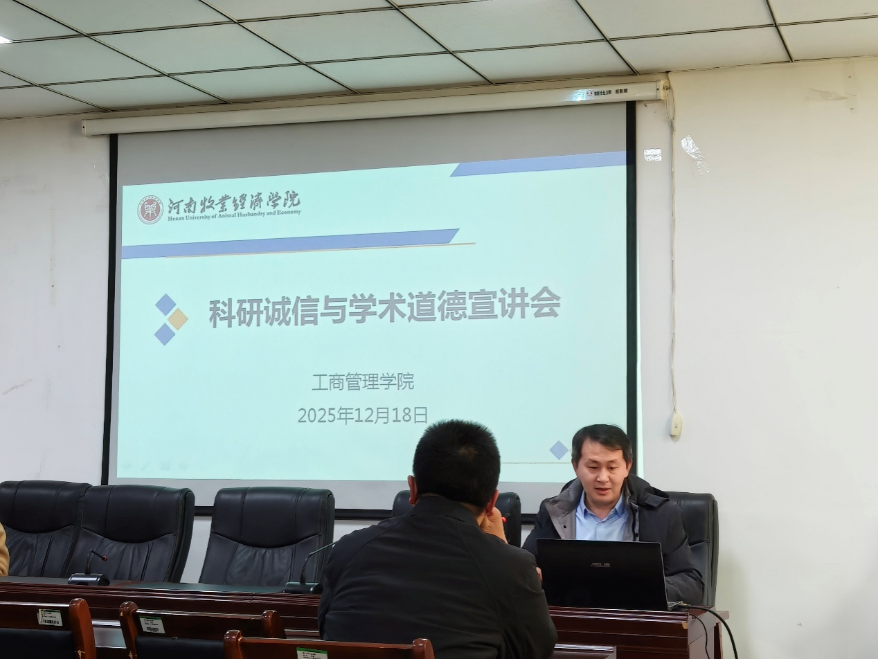 会议伊始,何丽娜院长阐述了开展科研诚信教育的重要意义。她强调,科研诚信是学术研究的生命线,也是学院事业高质量发展的“压舱石”。在学术生态日益复杂的背景下,全体教师必须筑牢思想防线,严守学术底线,共同维护学院的学术声誉与育人使命。随后,闫超华副院长围绕科研诚信的重要性、学术不端具体表现和筑牢学术诚信防线等三个方面展开详细讲解;系统解读了科技部等二十二部门印发的《科研失信行为调查处理规则》等11项重要政策文件,并结合近年来国家通报的学术不端典型案例、中国科学院发布的《国际期刊预警名单》,深入剖析了常见学术失信行为的危害与识别要点;就论文投稿前的学院报备流程、使用学校机构邮箱投稿、甄别正规期刊等具体环节提出明确建议,引导教师在实践中自觉践行诚信规范。