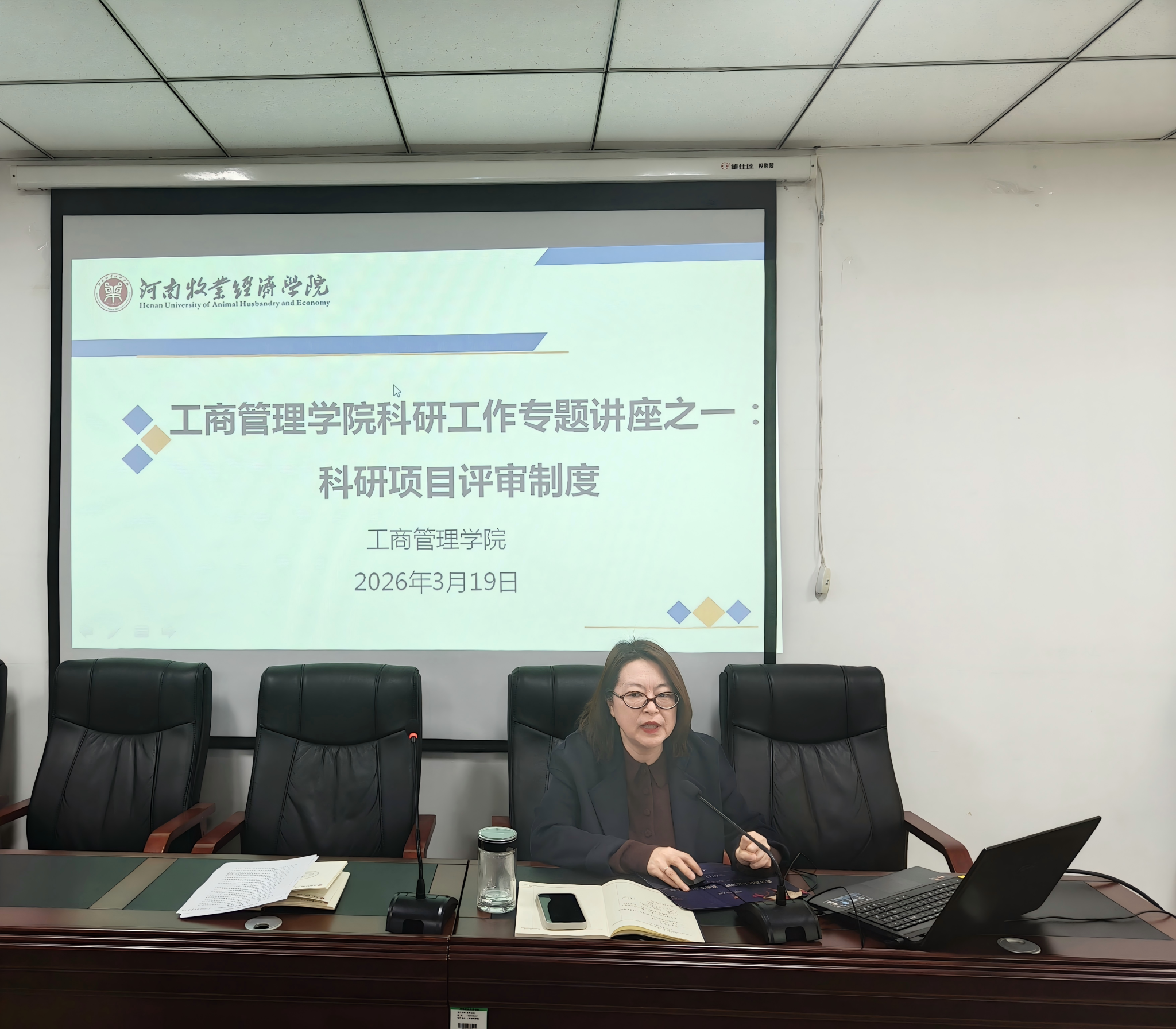 为进一步完善学院科研治理体系,提升有组织科研工作效能,3月19日下午,ok138cn太阳集团古天乐在227会议室举办科研工作专题系列讲座首场活动。本次讲座以“科研项目评审制度”为主题,由学院院长何丽娜教授主讲,全院教师参加活动。