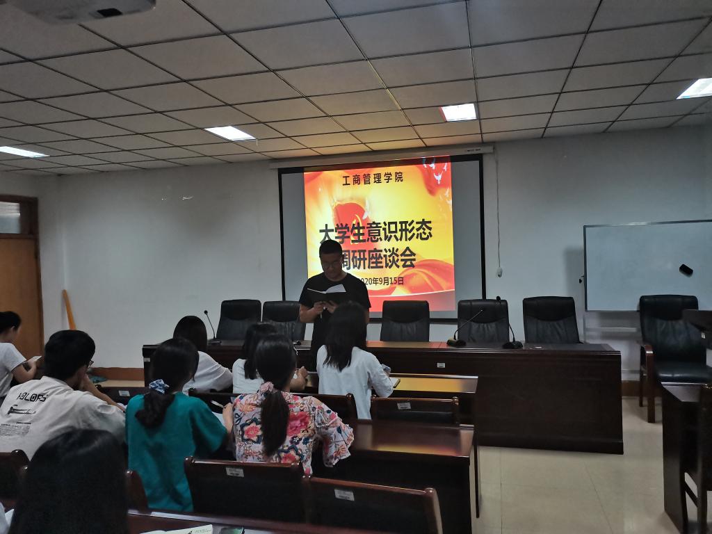 院学工办副主任贾雪首先传达了习近平总书记关于意识形态工作的重要论述。习近平总书记在全国高校思想政治工作会议上强调,“我们的高校是党领导下的高校,是中国特色社会主义高校”,这一论断旗帜鲜明地指出了我国大学的政治属性,她对如何做好意识形态工作,共青团干部、学生干部要发挥作用做出了具体阐释。座谈会上,学生干部赵亚凯、翟海利、张金龙等同学代表纷纷热烈发言,结合学校和自身实际,学生干部如何发挥桥梁纽带作用,阐述了当前意识形态领域存在的问题,提出了加强和改进意识形态工作的意见或建议。