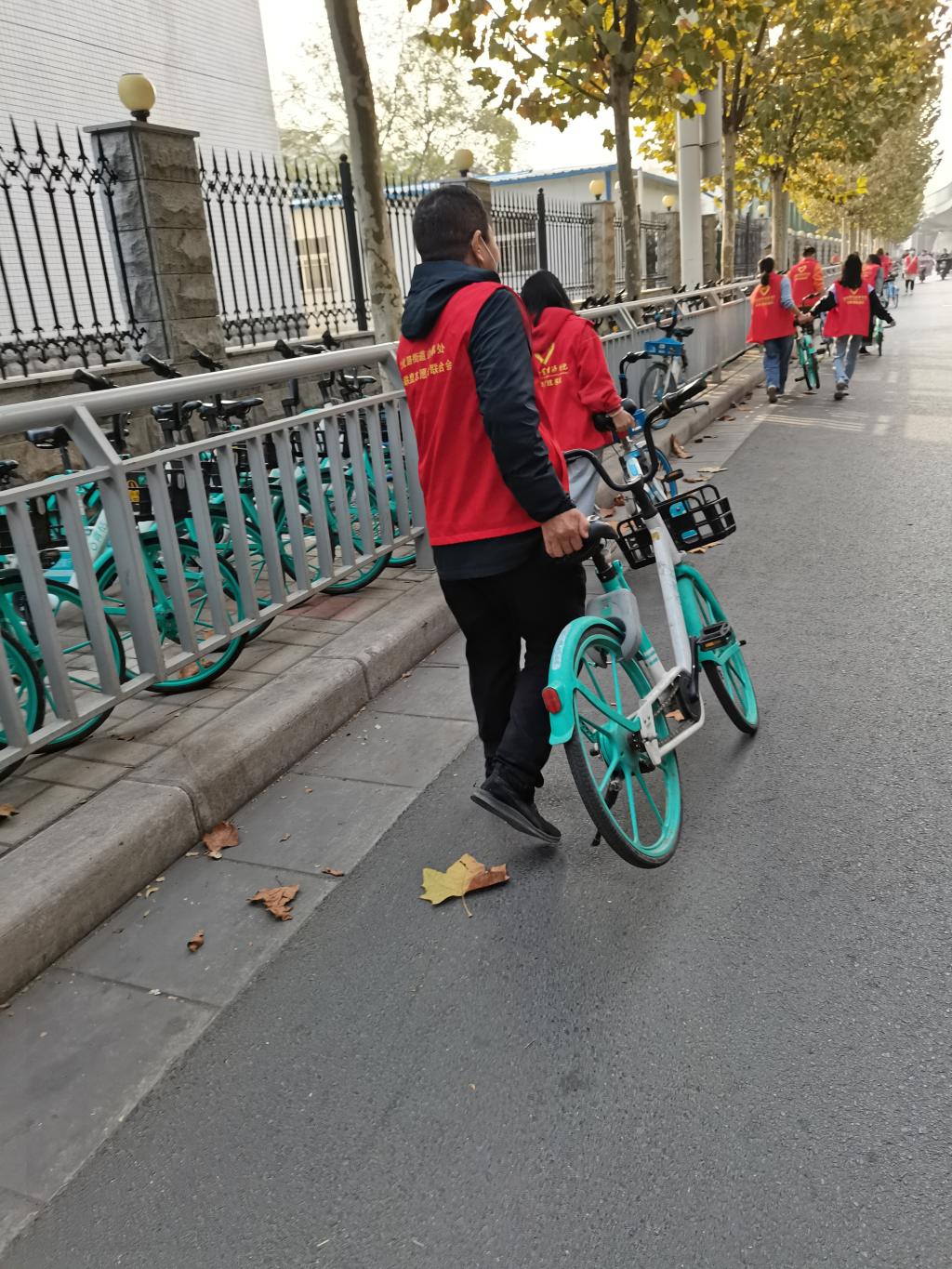 在摆放共享单车的活动过程中,党员们都非常积极主动,看到道路两旁有随意摆放的共享单车会马上将其停放到规定的地点并摆放整齐。经过大家的共同努力,校门口的共享单车全部摆放整齐有序。活动结束后,大家均表示这是一次很有意义的志愿活动,它不仅可以向群众积极宣传文明骑行、有序停放的重要意义,而且还可以引领群众将共享单车停放到规定地点,将“共享文明、绿色出行”的健康理念深入人心。