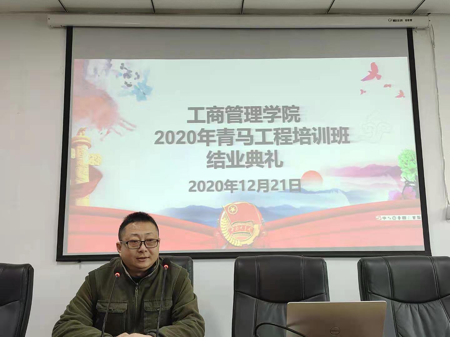 在时代壮阔的洪流中书写精彩人生,在青春壮美的奋斗中谱写华美乐章。12月21日中午12点40分,2020年“青马工程”大学生骨干培训班结业典礼在办公楼227会议室举行。院团委书记詹珅老师主持典礼,我院20级团学会干事和20级班长、团支书参加结业典礼。