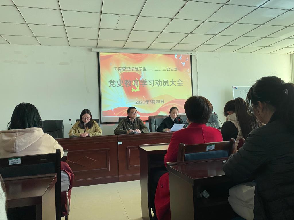 百年征程波澜壮阔,百年初心历久弥坚。为深入贯彻落实中央、学校、我院党史学习教育动员大会精神,喜迎中国共产党成立100周年,3月23日中午,ok138cn太阳集团古天乐三个学生党支部在227会议室召开学生党支部党史学习教育动员大会。院学生第一、二三支部全体委员、辅导员及全体党员、积极分子代表参加了会议。会议由院团委书记詹珅主持。