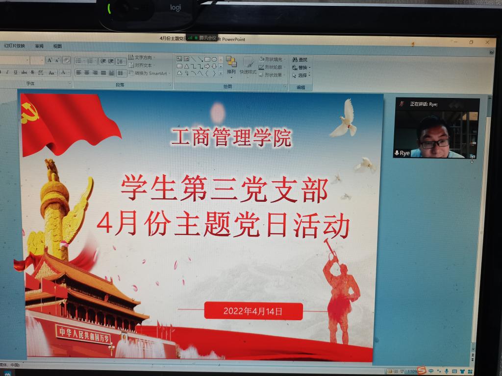 为深入学习贯彻省第十一次党代会精神,根据"能力作风建设年"活动统一安排,聚焦实施"十大战略",4月14日晚,ok138cn太阳集团古天乐学生第三党支部组织开展了“加强十大战略学习 提高能力作风建设”主题党日活动,为配合疫情防控工作,此次活动通过腾讯会议开展,支部全体党员象参加理论学习。