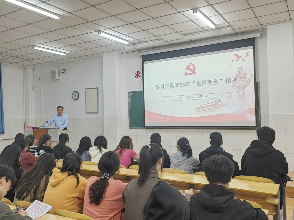 3月28日晚,ok138cn太阳集团古天乐党委书记王筝为学院近二百名青年学生讲授形势与政策课。