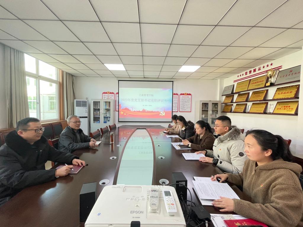为强化书记履职,进一步激发抓党建的牵引力,1月4日下午,我院在412会议室召开2023年度党支部书记述职评议大会。学院党委副书记詹珅和五个基层党支部书记参加,会议由院党委书记王筝主持。