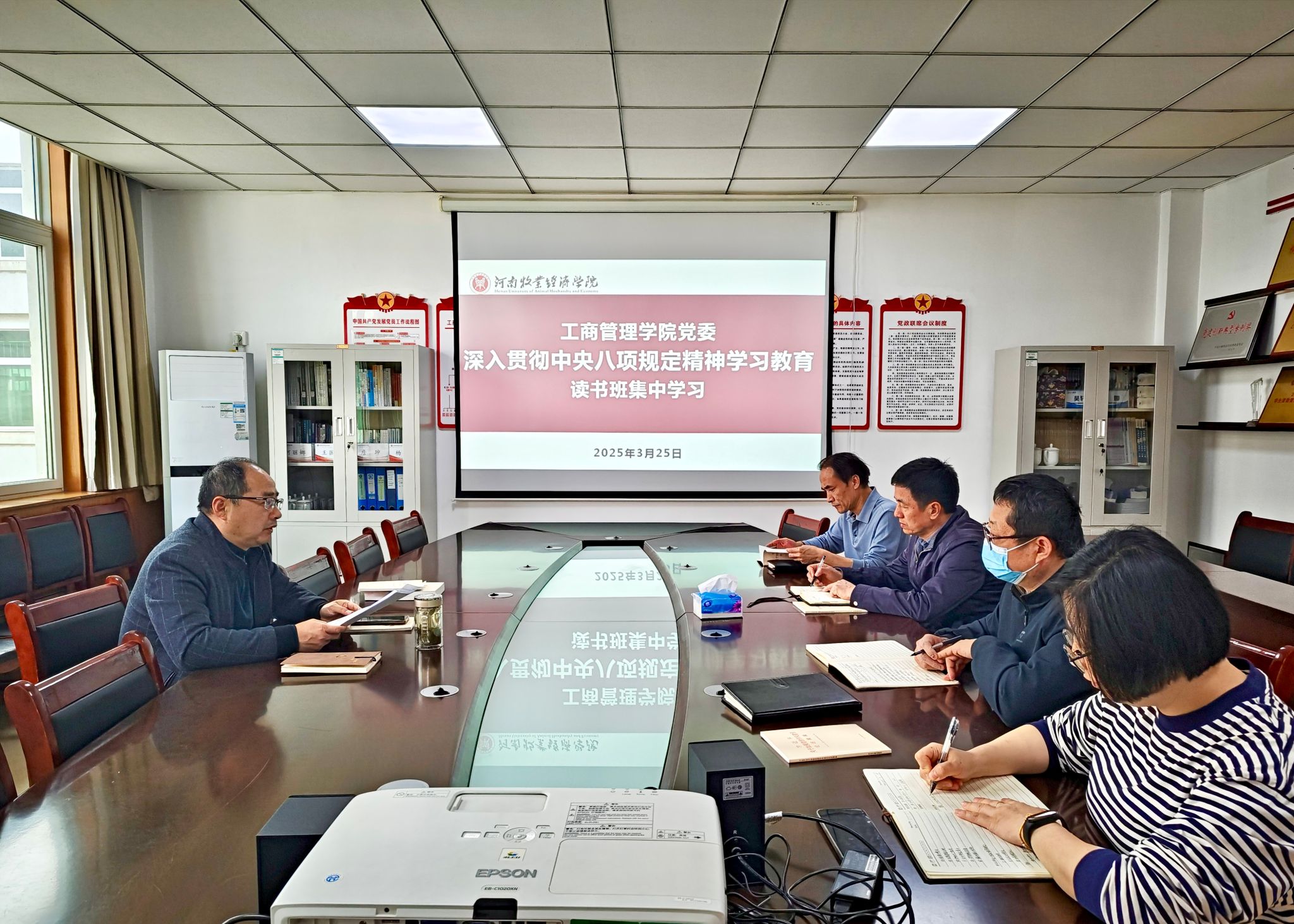 为深入贯彻中央八项规定精神,落实全面从严治党要求,根据上级文件精神及学校的整体工作部署,3月25日上午,学院党委于英才校区教学办公楼412会议室正式拉开了深入贯彻中央八项规定精神学习教育读书班的序幕。此次学习聚焦习近平总书记关于加强党的作风建设的重要论述以及中央八项规定及其实施细则精神,学院二级党组织理论学习中心组成员参加会议,会议由学院党委书记王国辉主持。
