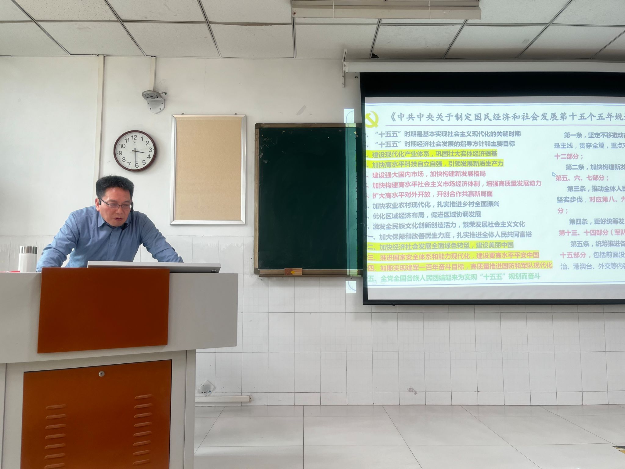 刘明定教授围绕五个核心方面展开讲解。他先从多维度系统阐释了党的二十届四中全会的重大意义,强调其为"十五五"时期发展锚定方向;随后解读了"十五五"发展的总体部署与目标路径,聚焦建设现代化产业体系、培育新质生产力等重点举措分析高质量发展要求;同时明确党的领导是中国式现代化的根本保证,号召师生以实干担当将全会精神融入教育教学与本职岗位,切实把学习成果转化为推动学院、学校高质量发展的实际行动。