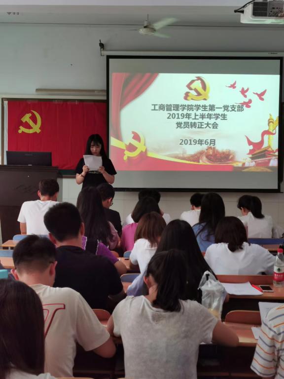 会议进行第四项:由学生第一党支部书记周倩同志宣读支部决议,同意这18名预备党员按期转为正式党员,大家对此给予热烈的祝贺。