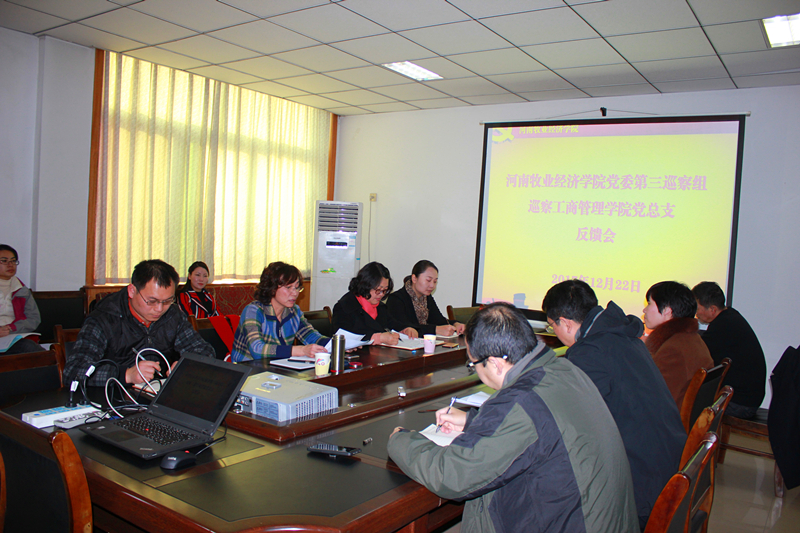 按照校党委巡察工作领导小组的部署,2017年12月22日下午在ok138cn太阳集团古天乐413会议室,校党委第三巡察组向ok138cn太阳集团古天乐党总支反馈巡察情况。副校长陈艳、第三巡察组组长赵桂珍、副组长陈永刚、巡察组成员李笑晓以及ok138cn太阳集团古天乐班子成员和全体科级以上干部出席会议。