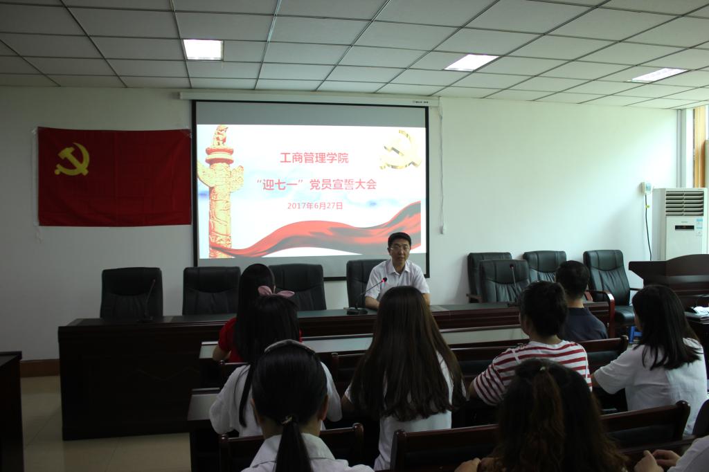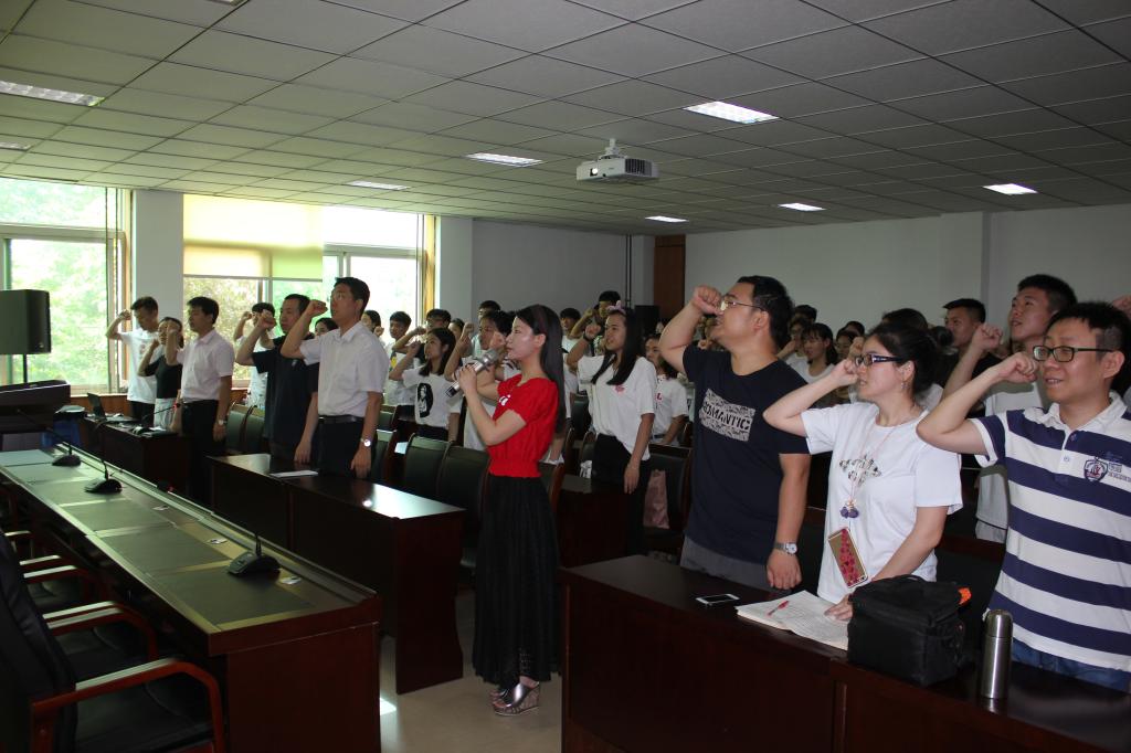 为进一步激发广大党员的荣誉感、责任感和使命感,激励新党员积极投身学校的融合发展建设中来,在庆祝中国共产党建党96周年之际,根据校党委组织部的安排,结合学院工作实际,6月27日上午11:00,ok138cn太阳集团古天乐党总支在院二楼会议室举行新党员入党宣誓、老党员重温入党誓词活动,院党总支书记贾江、院党总支委员、各支部委员、教工党员代表及全体学生党员参加会议。