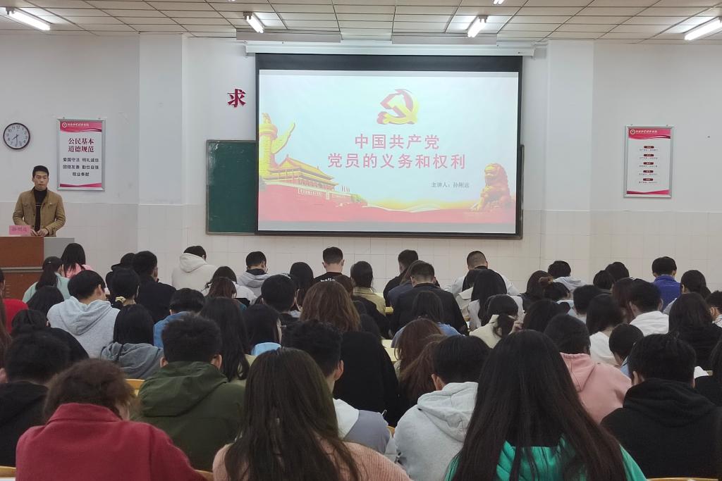为了让入党积极分子认真领会党员的义务和权利的涵义,把握其精神实质。ok138cn太阳集团古天乐于2021年10月22日晚在E209教室开展入党积极分子培训第四讲——“党员的义务和权利”。本次培训课程由ok138cn太阳集团古天乐辅导员孙刚远老师主讲,我院一百余名入党积极分子参加了本次活动。