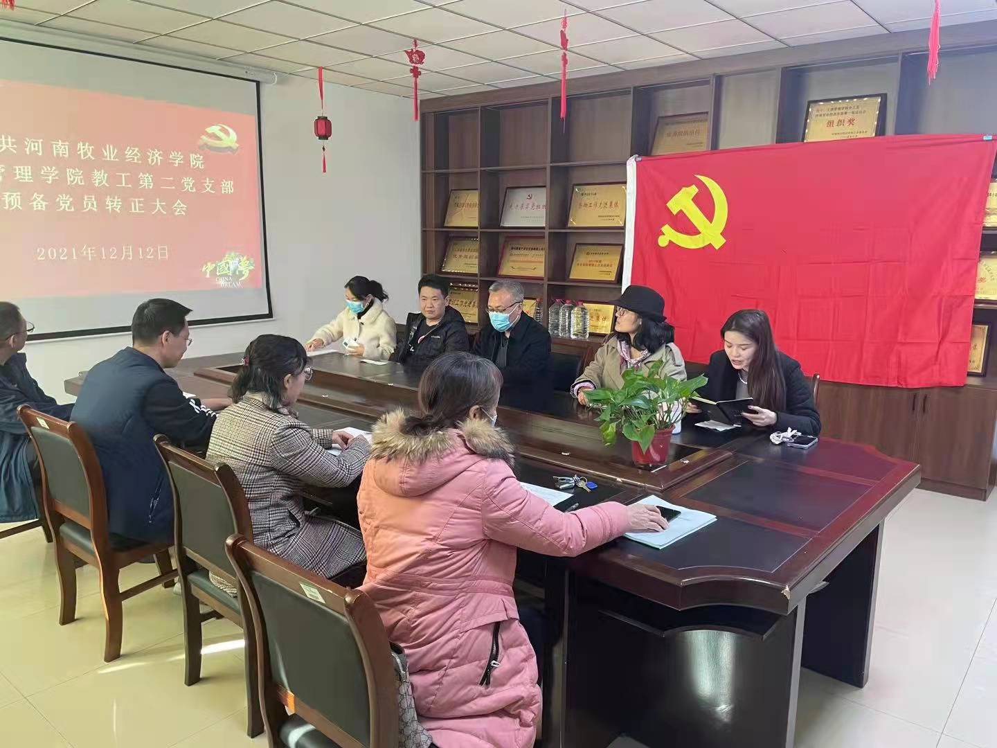 12月12日,ok138cn太阳集团古天乐教工第二党支部在学院413会议室召开预备党员转正大会。会议的主要议题是讨论学院教工党支部2020年预备党员张蓓老师期满转正问题。支部全体正式党员和预备党员参加了会议,会议由支部组织委员周楠同志主持。