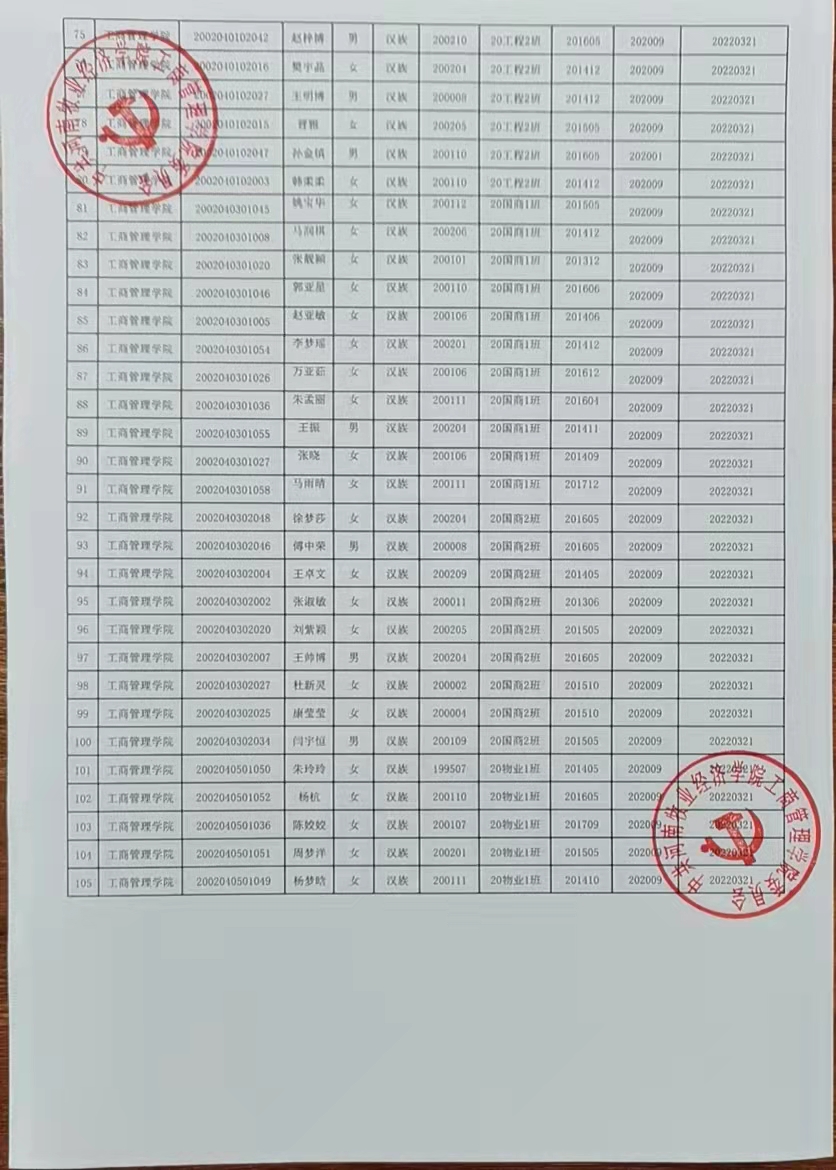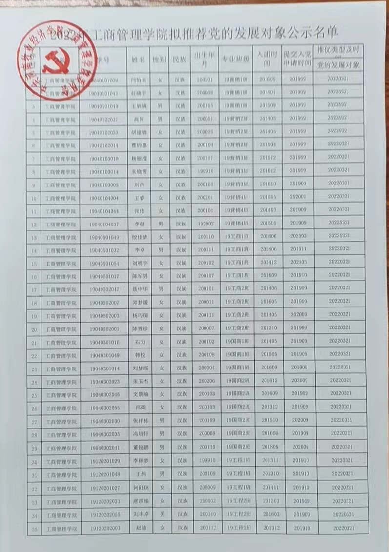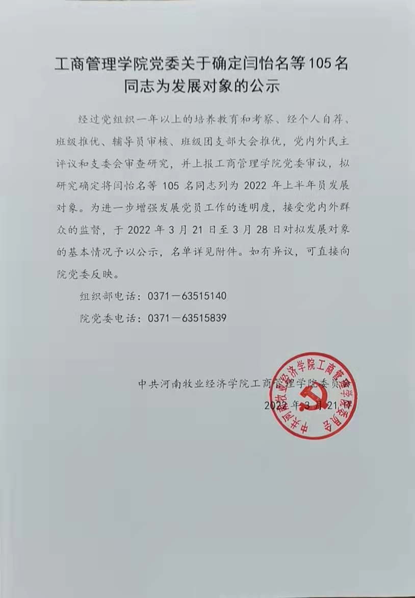 ok138cn太阳集团古天乐党委关于确定闫怡名等105名同志为发展对象的公示
