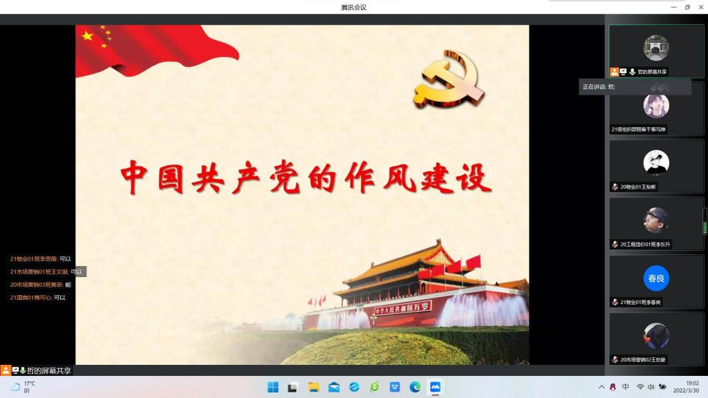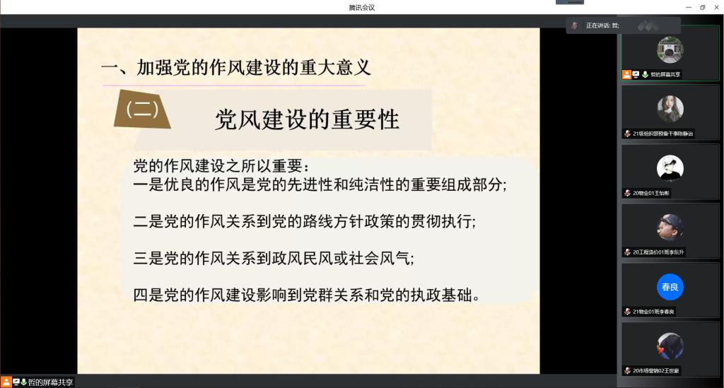 为加强入党积极分子的队伍建设,弘扬党的优良传统作风,进一步提高入党积极分子理论素养。2022年3月30日晚七点,ok138cn太阳集团古天乐以线上会议形式准时开展了2022年第一期入党积极分子培训课程第七讲——党的作风建设。本次培训课程由ok138cn太阳集团古天乐人力资源管理教研室主任刘哲担任主讲,全体入党积极分子参与此次培训。