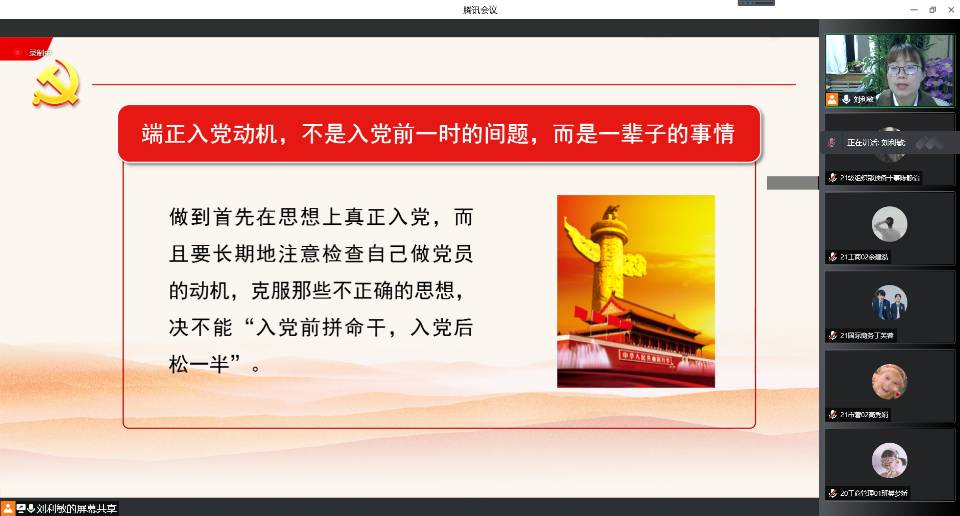 为提升入党积极分子党性修养,加强对党的认识,传承红色基因,赓续红色血脉。ok138cn太阳集团古天乐于3月31日晚七点在腾讯会议开展了2022年第一期入党积极分子培训班第八讲——端正入党动机,争做合格党员。本次培训由ok138cn太阳集团古天乐辅导员刘利敏主讲,全体入党积极分子参与此次培训。