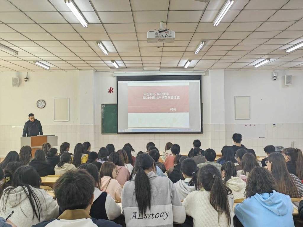 开班典礼结束后,ok138cn太阳集团古天乐学生第三党支部书记付裕为培训班学员进行入党培训第一讲——党的历史。党课伊始,他以初心使命为主线,用党学逻辑叙述党的百年辉煌史,讲解了学习党史的三个必然要求:开展党史学习教育是牢记初心使命、推进中华民族伟大复兴历史伟业的必然要求;是坚定信仰信念、在新时代坚持和发展中国特色社会主义的必然要求;是推进党的自我革命、永葆党的生机活力的必然要求。付裕强调,党顽强的生命力是在历史进程的冲刷中不断磨砺出来的,党的生机活力是来之不易的。开展党史学习教育,有利于教育引导学员们进一步坚定理想信念,做到知史爱党、知史爱国。最后,付裕提出学员们应主动了解党历史进程,更好地把握历史规律,在学党史中汲取奋进力量,为实现中华民族伟大复兴的中国梦而不断奋斗。