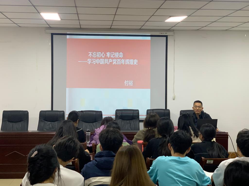开班仪式结束后,付裕为入党积极分子进行入党培训第一讲——“党的历史及成就”。会议伊始,付裕以初心使命为主线,带领入党积极分子重温了中国共产党的百年辉煌史。随后,付裕强调党史学习教育具有现实紧迫性,开展党史学习教育是对我们党坚定信仰信念、用党的创新理论武装全党的生动体现。最后,付裕指出入党积极分子们应主动了解党的历史进程,更好地把握历史规律,在学党史中汲取奋进力量,为实现中华民族伟大复兴的中国梦而不懈奋斗。