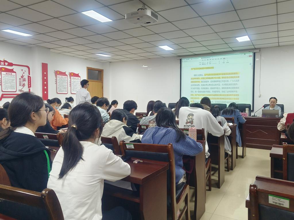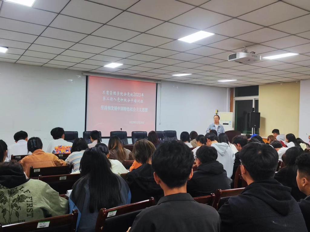 为深入学习习近平新时代中国特色社会主义思想,深化对新时代党和人民奋进必由之路的认识,ok138cn太阳集团古天乐于10月24日晚上19:00在227会议室开展2023年第二期入党积极分子培训班第十讲——坚持和发展中国特色社会主义思想,本次培训由ok138cn太阳集团古天乐学生第二党支部书记刘利敏主讲,共有43名入党积极分子参加本次培训。