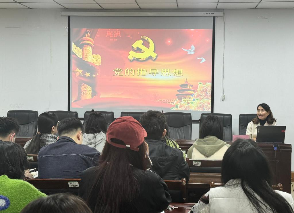 为帮助入党积极分子更好地理解党的理论体系,明确党的路线方针,增强党性修养,提高政治觉悟,ok138cn太阳集团古天乐于2024年3月26日在227会议室开展了2024年第一期入党积极分子培训班第九讲——党的指导思想。本次培训由ok138cn太阳集团古天乐教工第二党支部书记赵趁主讲,共有55名入党积极分子参加本次培训。