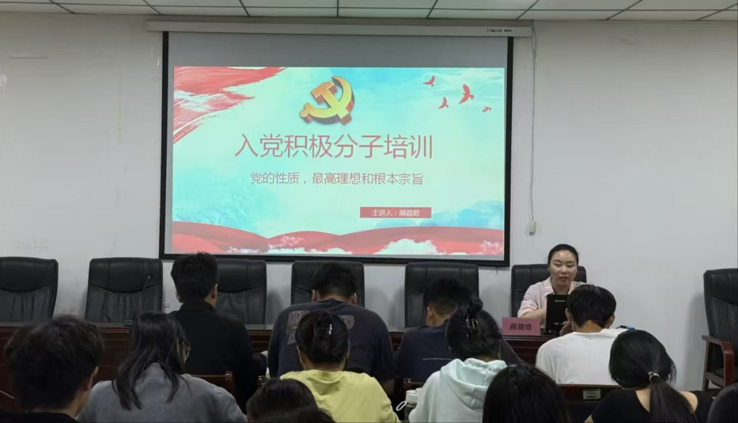 开班仪式结束后,学生第二党支部书记郝晨晗为入党积极分子进行入党培训第一讲。党课伊始,郝晨晗组织入党积极分子观看《摩登时代》电影片段,该片所展示的资本主义社会的丑陋面貌与共产主义社会的美好生活形成了鲜明对比。随后,郝晨晗从“中国共产党的性质与宗旨”“党的最高理想”“青年是中国的先锋力量”和“发挥先锋模范的途径和方法”等四个方面出发,深入浅出讲述了中国共产党是什么样的党,引经据典阐释了党的性质和宗旨基本内涵,加深学员对党的认识和理解,引导学员深刻领悟党的精神内核,激励学员努力学习不断提高个人思想觉悟,为早日成为一名合格的共产党员而不懈奋斗。