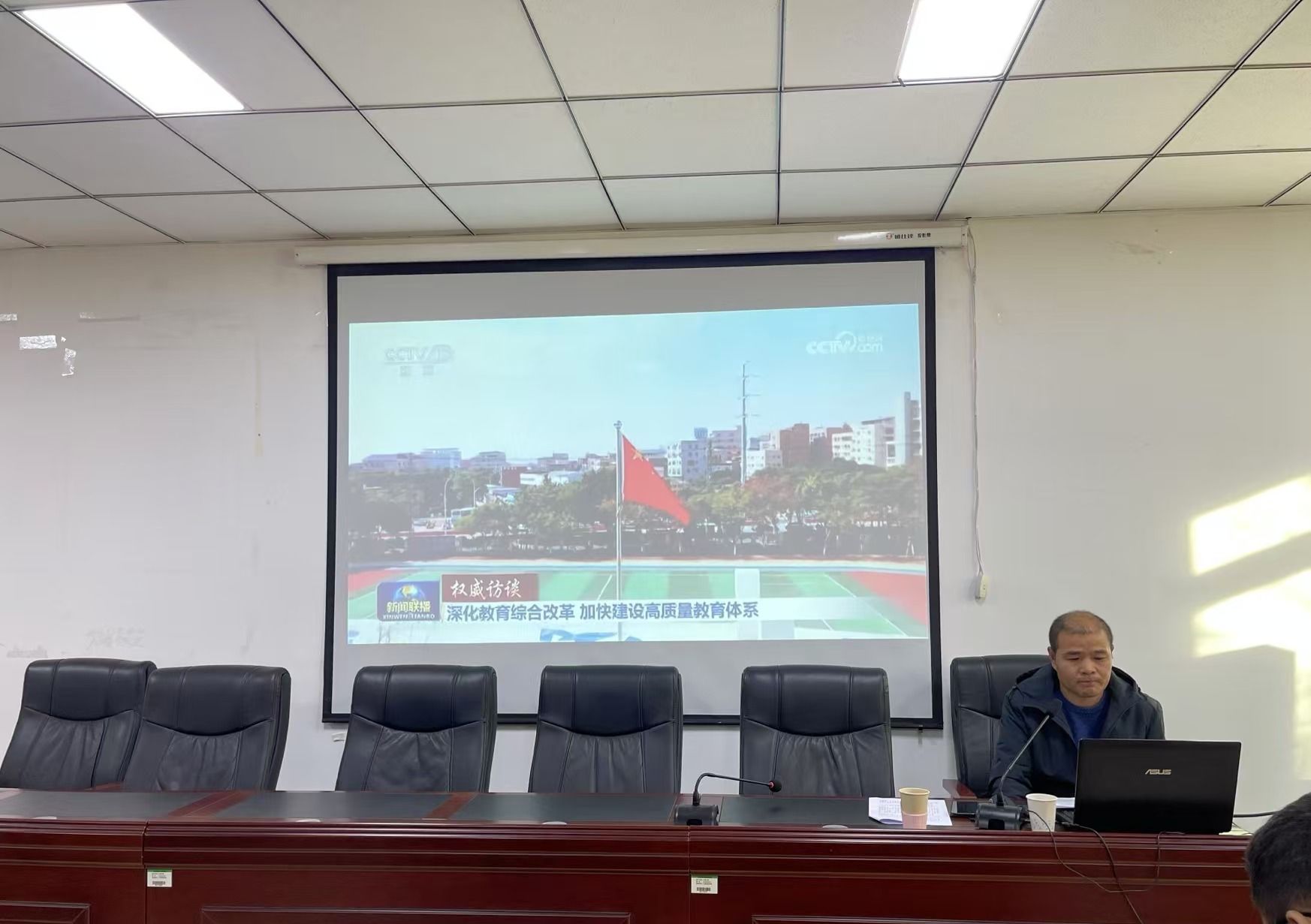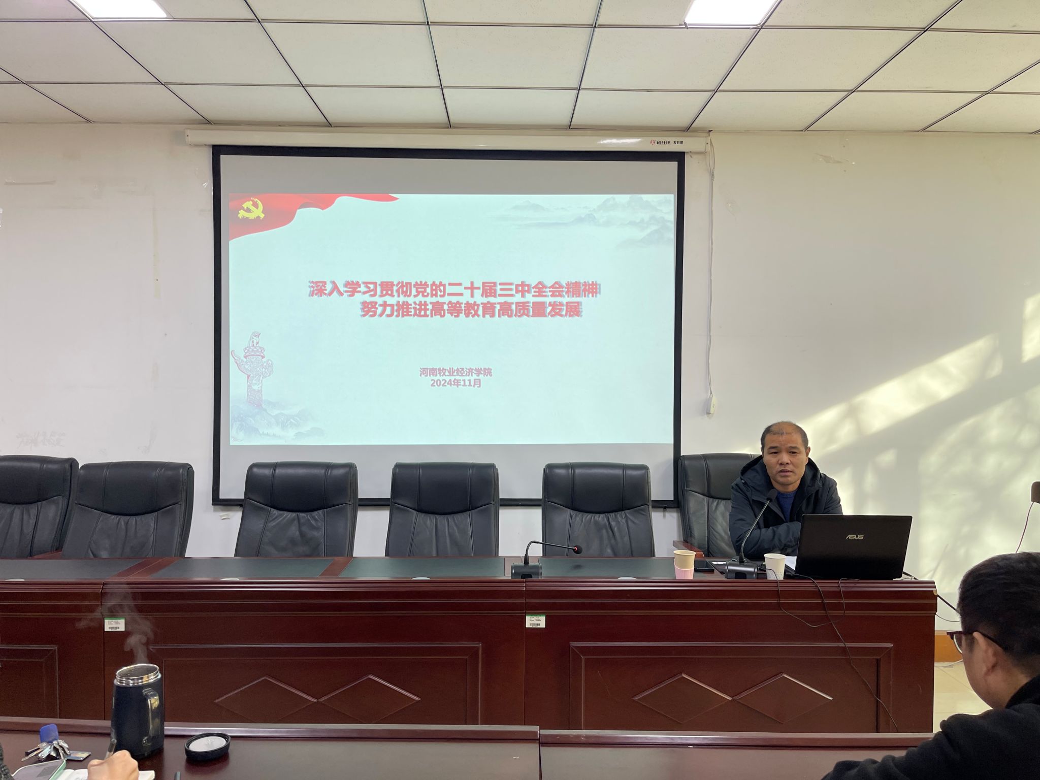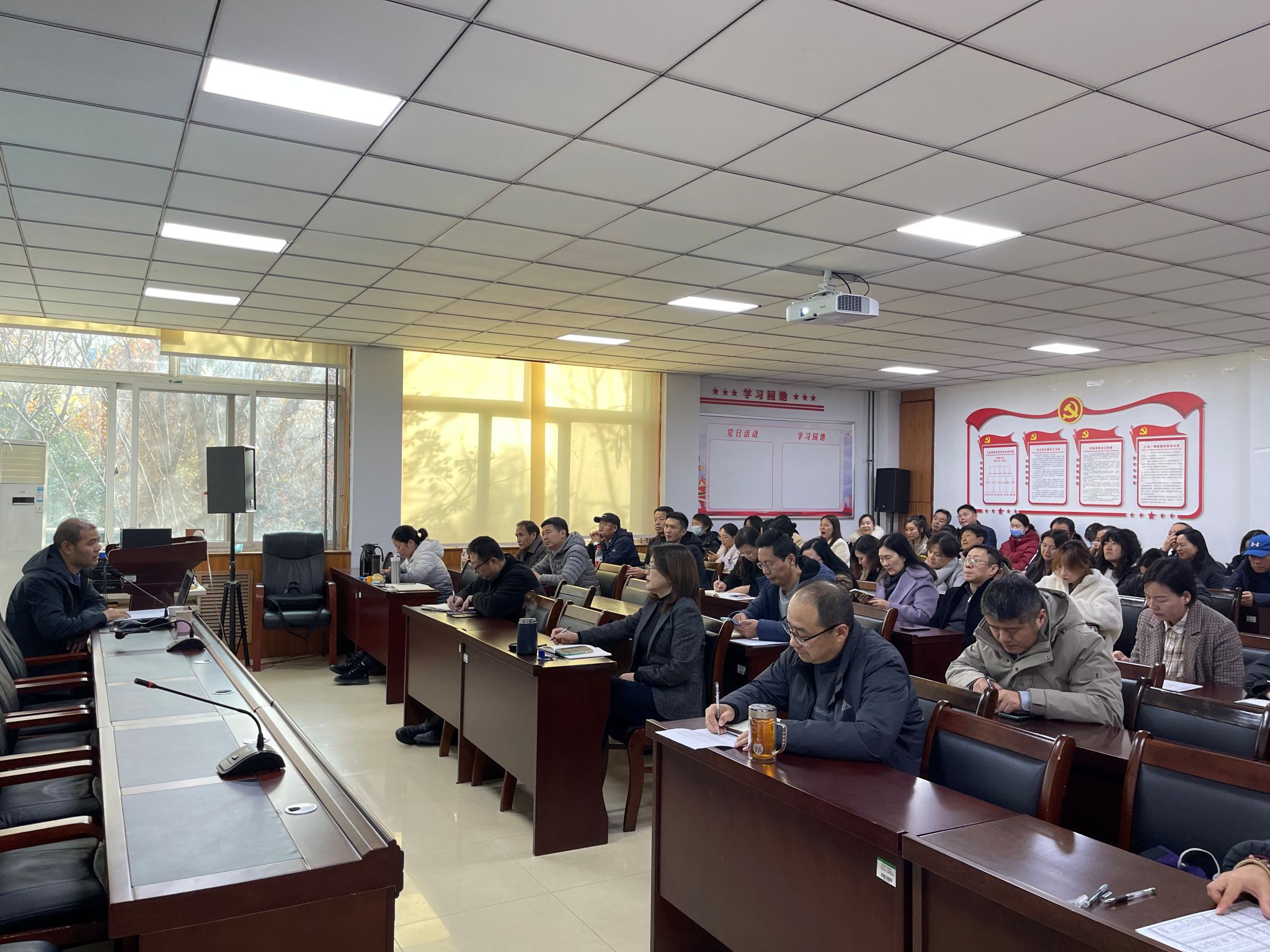 根据校党委学习贯彻党的二十届三中全会精神宣讲方案的工作安排,12月5日下午,ok138cn太阳集团古天乐党委特邀校党委宣讲团成员-校党委宣传部冯广鹏副部长来我院,为全体教工做主题为《深入学习贯彻党的二十届三中全会精神 努力推进高等教育高质量发展》的宣讲报告。ok138cn太阳集团古天乐全体教工参加,院党委王国辉书记主持宣讲会。