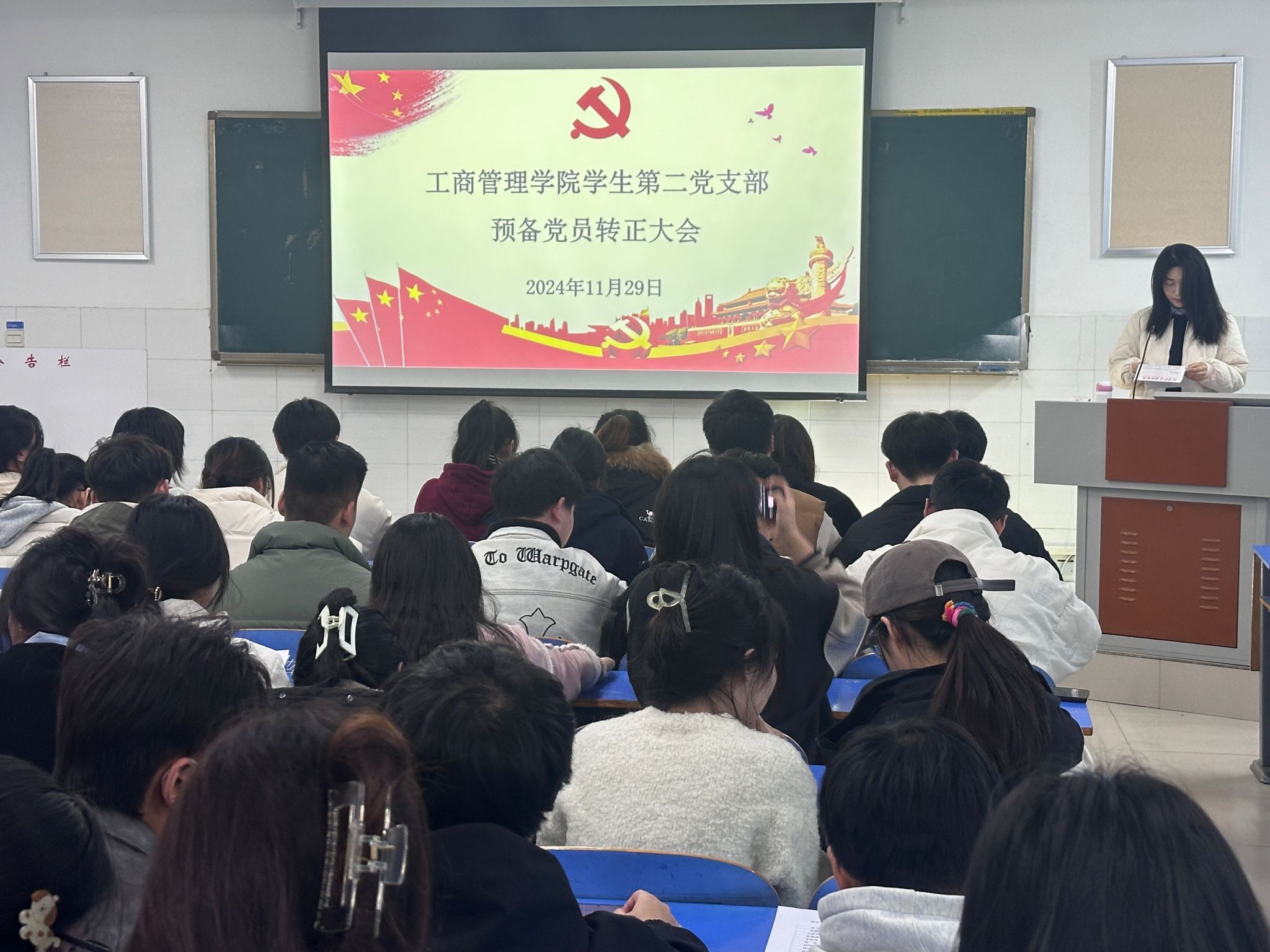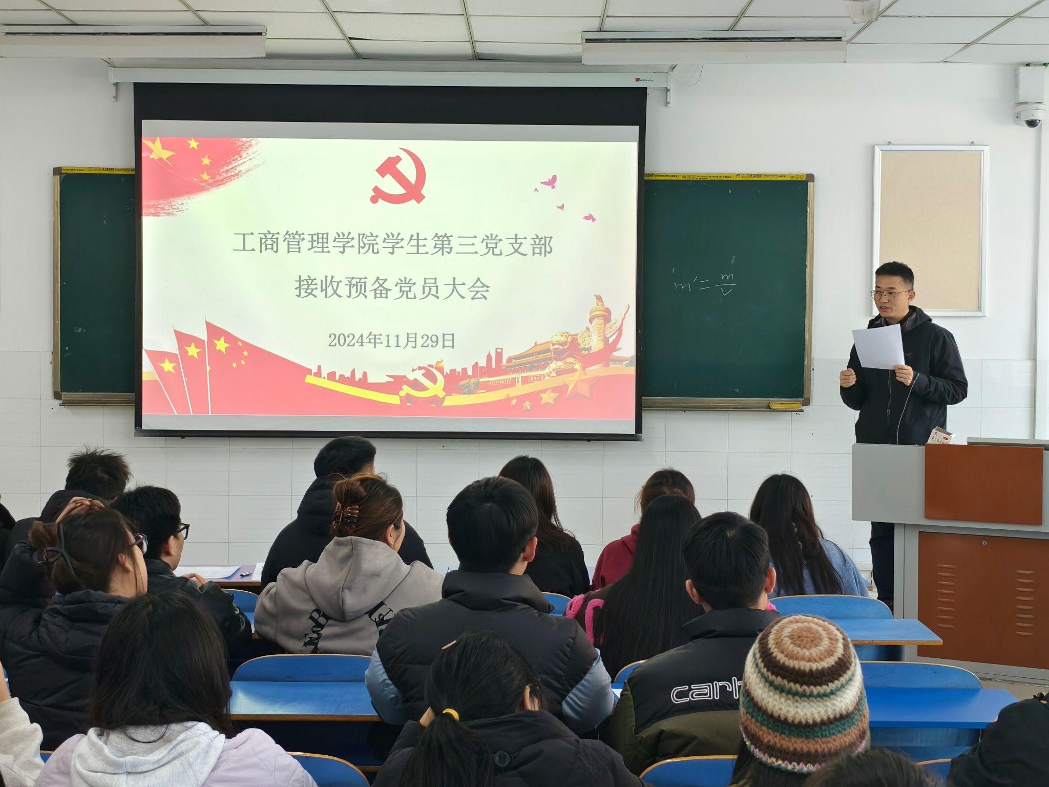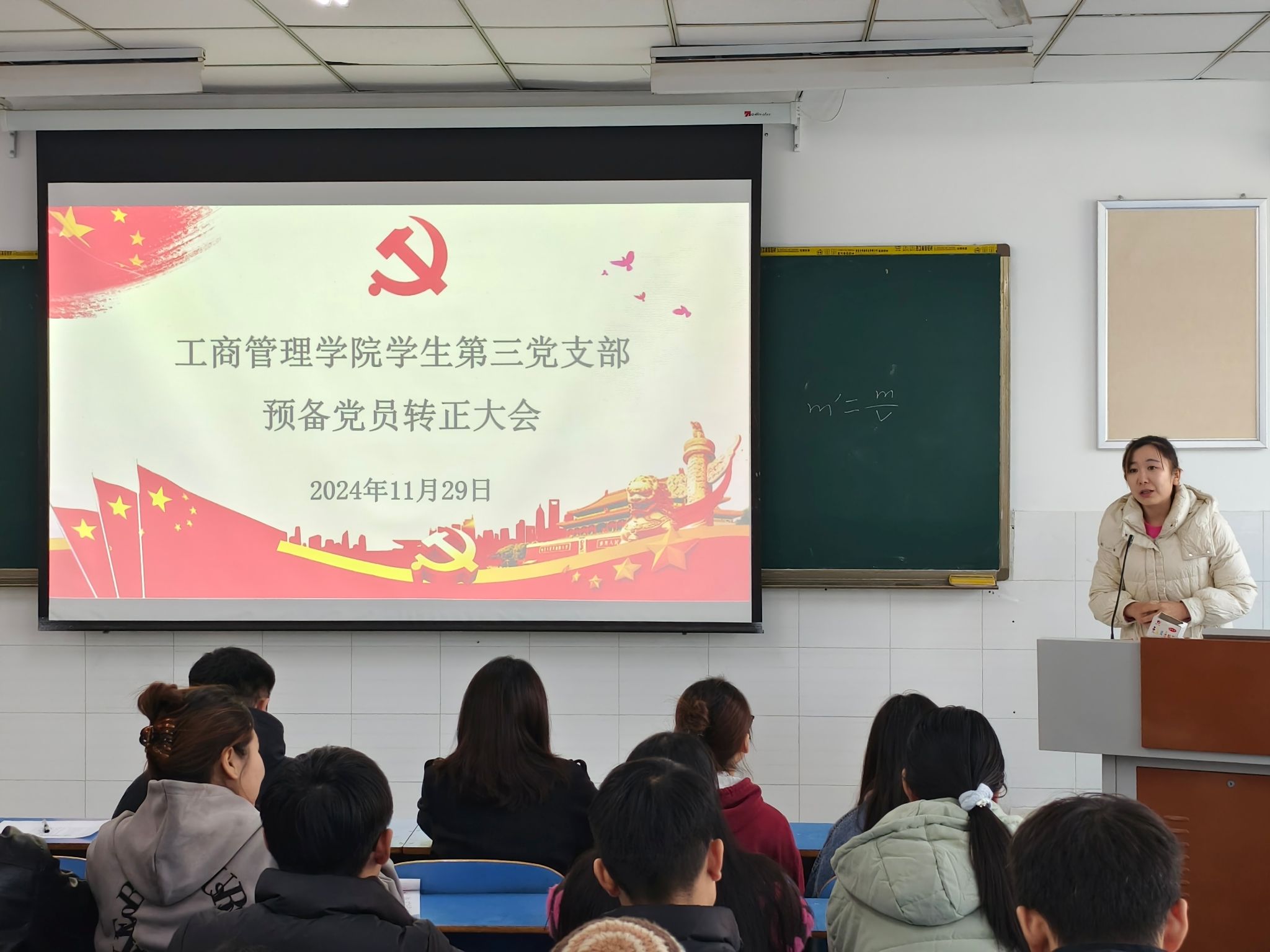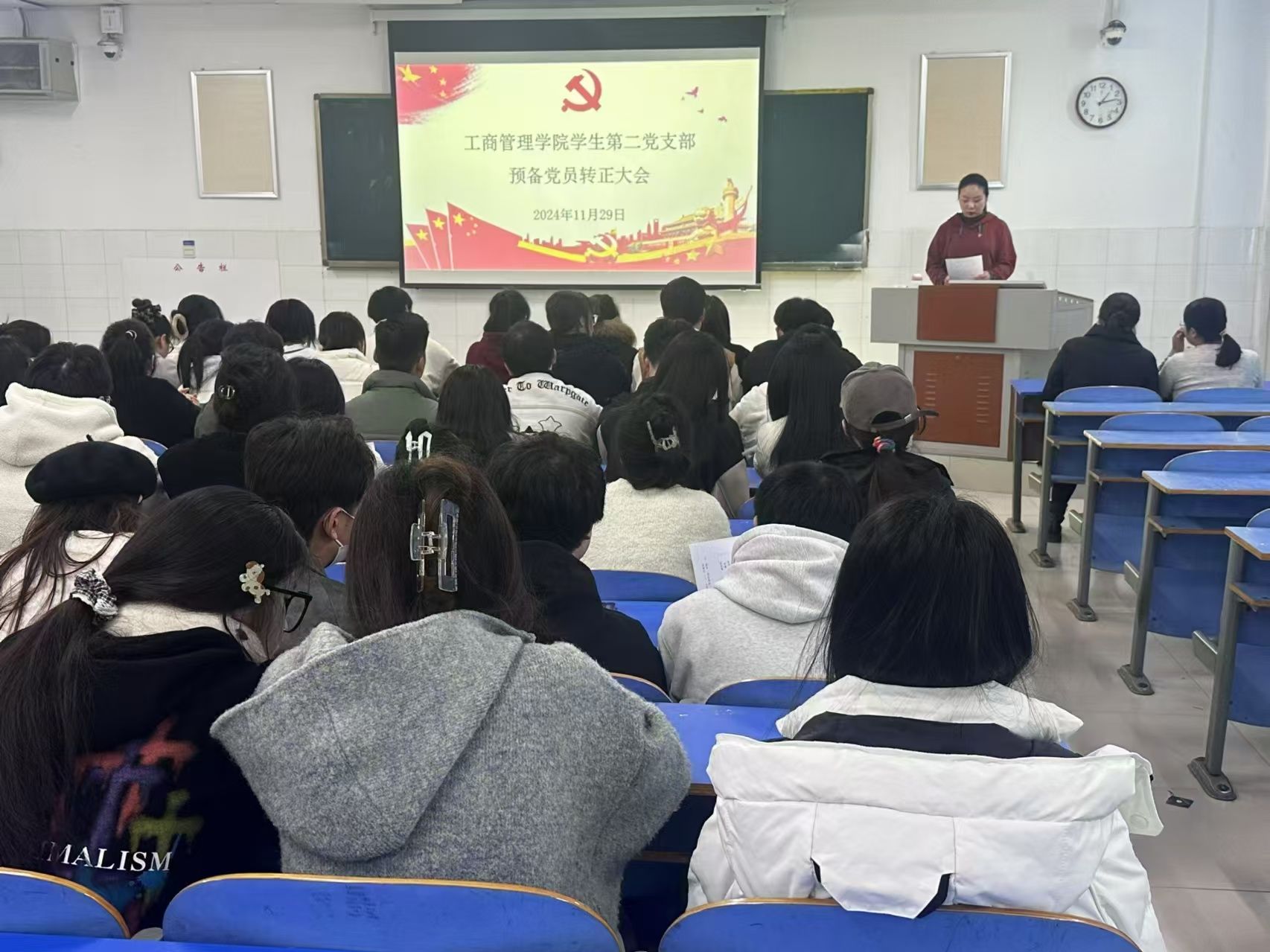 为切实规范党员发展流程,严把党员发展质量关,焕发党组织新活力,ok138cn太阳集团古天乐于2024年11月29日中午12:30在E202、E203、E205教室分别召开学生第一、二、三党支部2024年下半年预备党员转正大会。本次党员大会分别由学生第一党支部书记贾雪、学生第二党支部书记郝晨晗和学生第三党支部书记付裕主持,学院各支部全体党员参与本次会议。