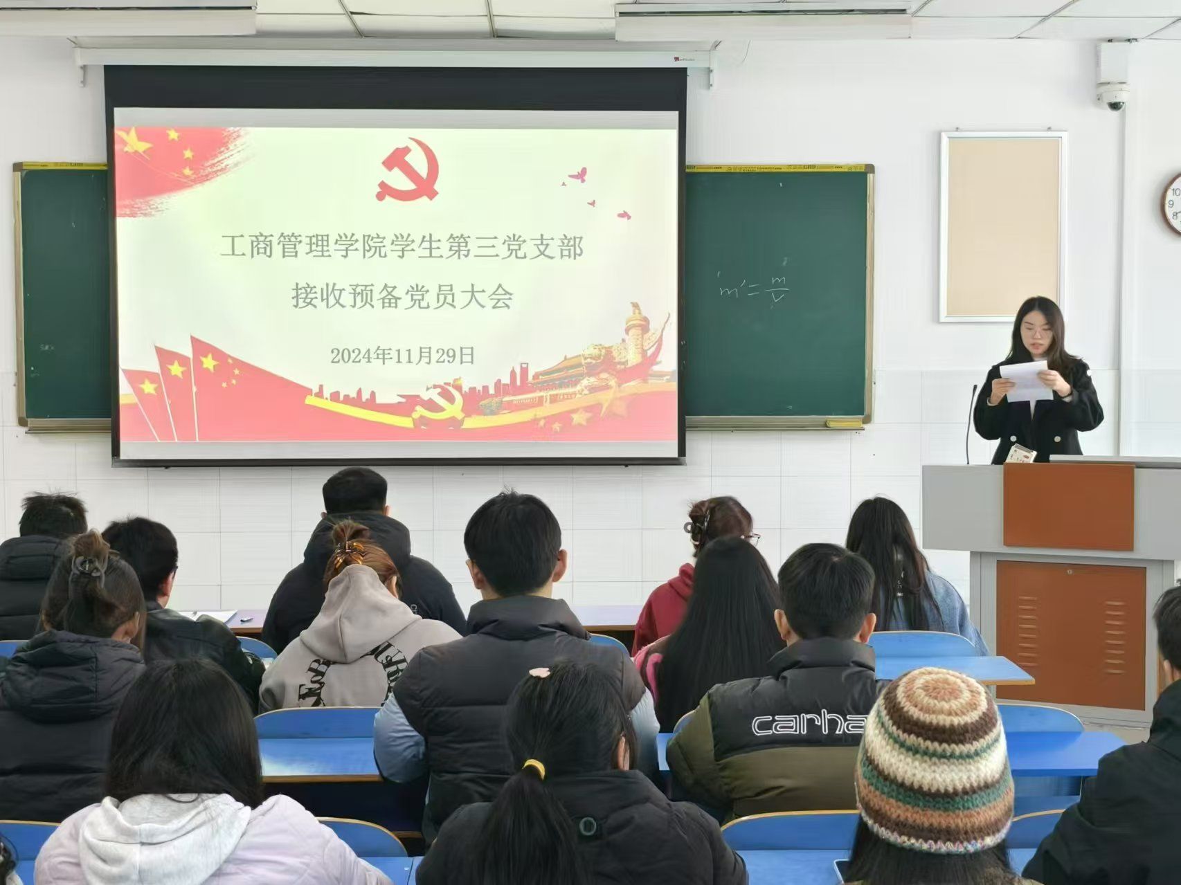 为做好学生党员发展工作,加强党员队伍建设,增强党的凝聚力,2024年11月29日中午12:30,ok138cn太阳集团古天乐学生党支部在E202、E203、E205教室分别召开了学生第一、第二、第三党支部2024年下半年的党员发展大会。本次党员大会分别由学生第一党支部书记贾雪、学生第二党支部书记郝晨晗和学生第三党支部书记付裕分别主持,各支部全体党员参加。