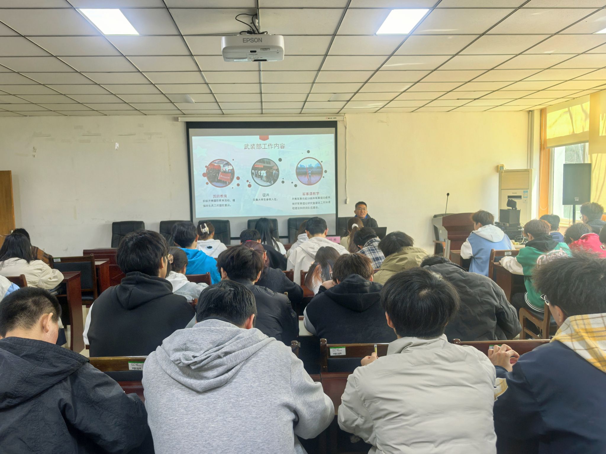 培训伊始,付裕老师详细阐述大学生征兵入伍相关事宜,就身体条件、政治审查、参军时间节点等关键内容,进行了全面且细致的介绍,使同学们对大学生征兵政策有了清晰认知。为增进同学们对军队生活的切实了解,付裕老师结合真实案例,播放抗美援朝相关视频,生动展现了特殊时期军人不畏艰难、英勇斗争的大无畏精神。随后,他又通过几段现代军营视频,深入浅出地进行讲解,使同学们对军队生活的多元与活力有了更为深刻的感受。在深入讲解过程中,同学们深刻领悟到国防建设的重要意义,国防意识显著增强。培训尾声,付裕老师对本次培训进行总结,鼓励同学们积极响应国家号召,踊跃参军入伍,在军旅生涯中严格自律,自觉遵守法律法规,积极践行社会主义核心价值观,希望学员们深知,生逢盛世,机遇与挑战并存。当以“功成不必在我,功成必定有我”的担当,投身时代洪流,为祖国的繁荣倾尽心力,在时代答卷上写下无悔青春。