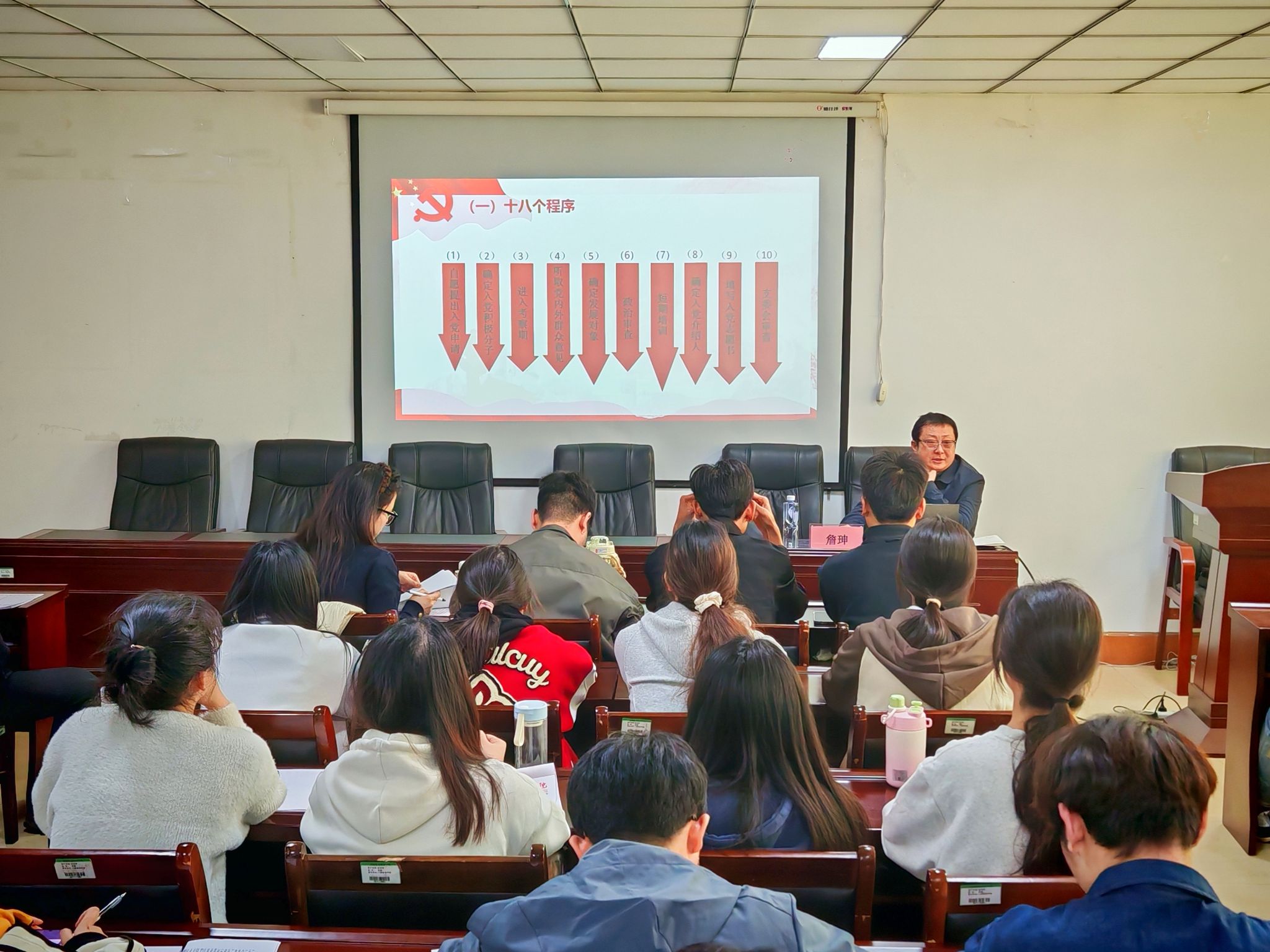 为深入理解党的组织原则,明晰入党程序。ok138cn太阳集团古天乐于4月1日在227会议室举办2025年第一期入党积极分子培训班第八讲——中国共产党的组织原则和入党程序。本次党课由学院党委副书记詹珅主讲。