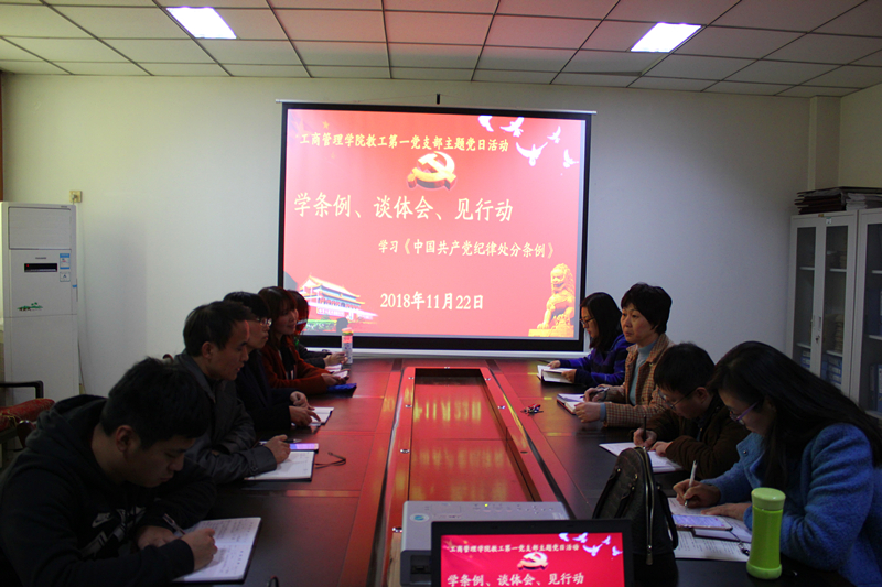 工商管理党总支通过开展学习“学《条例》、谈体会、见行动”主题党日活动,使全院党员干部对规范党组织和党员行为的基础性法规有了更全面、更清晰、更细化的认识。