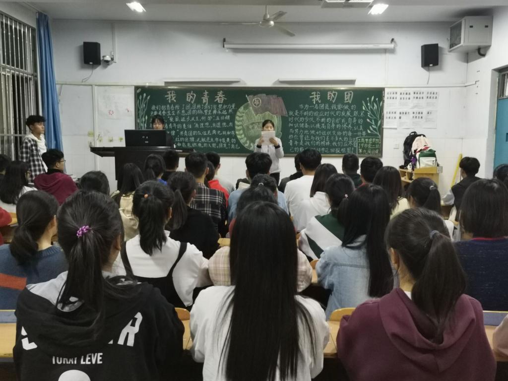 团课伊始,各班团支书首先向大家详细讲述了青春与共青团的关系,青春绚丽多彩,青春短暂有限,作为新时代青年,应在有限的青春里,为团做贡献,一心向团,一心为团。接着,同学们纷纷上台发表自己对本次团课主题的理解,阐述青春与团的关系。随后,团支书组织同学们通过答辩,问答,演讲等活动形式积极互动,进一步加深了同学们对青春与团的理解,共青团是党的后备军,新一代青年是党的希望,应让青春之花在共青团中绽放。最后,团支书带领同学们重温入团誓词,在同学们高昂的宣誓声中,本次团课圆满结束。