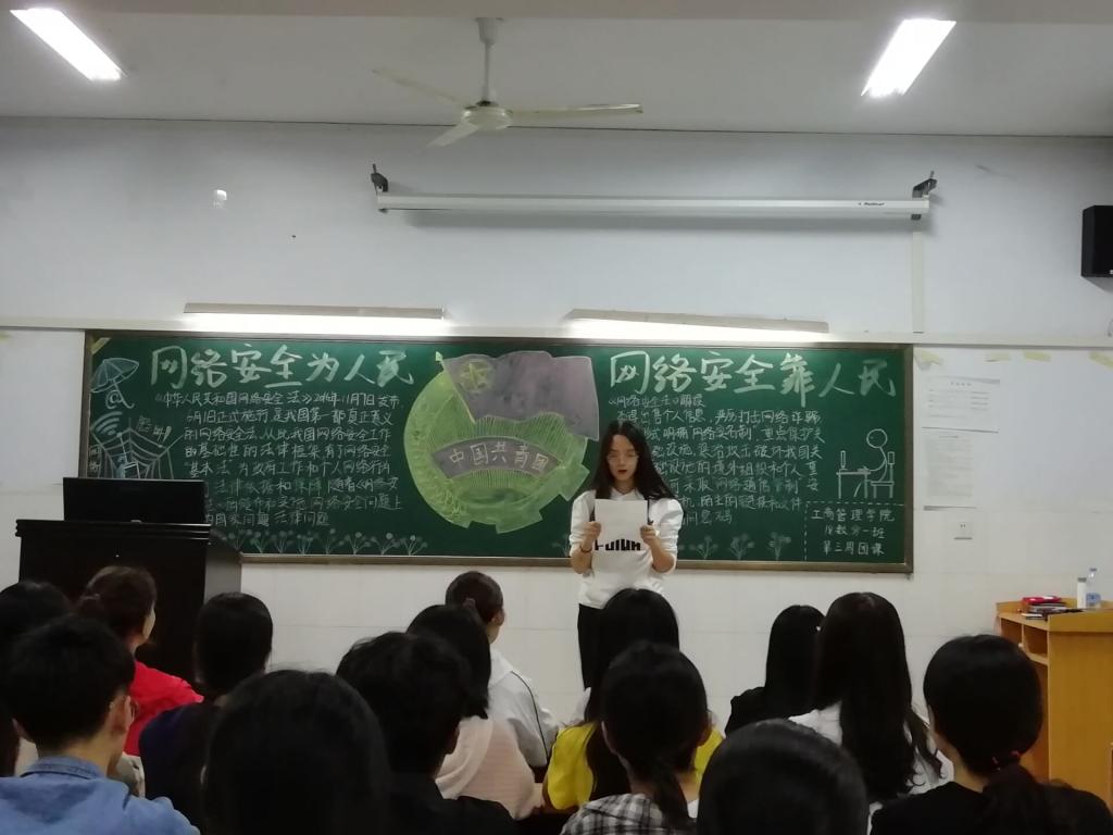 团课伊始,各班团支书结合图片和有关演讲为大家讲述了有关网络安全及电信诈骗的案例,并组织同学进行讨论,共同提高大家的网络安全防范意识。随后,主持人向大家详细讲述了绿色上网的意义,并组织部分同学对虚拟网络中各种情况采取的自我保护措施等发表自己的意见,在座同学均积极参与,认真回答。最后,各班团支书进行了团课总结。至此,本次团课圆满结束。