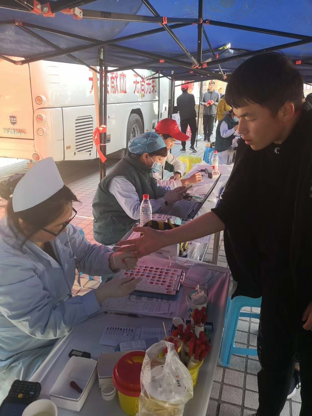 下午2时,河南省红十字血液中心的献血车准时来到英才校区美食广场,志愿者们早已戴好小红帽准备就绪,随时准备积极配合血液中心的工作人员展开活动。活动中,服务区的志愿者耐心地向前来献血的同学介绍整个流程,细心指引,耐心解答同学们在献血过程中遇到的各种问题,为场内秩序的稳定打下了良好的基础;登记处的志愿者认真登记献血者的名单,一丝不苟;礼品处的志愿者依次给已献血的同学分发献血纪念品,井然有序。前来捐献爱心的同学络绎不绝,并纷纷表示参加这样的活动很有意义,会继续下去,用自己点滴的努力,温暖更多的人,也会影响身边更多的人参与到无偿献血的队伍中,用再生的血液来挽救不可重来的生命。广大师生热情高涨,积极踊跃,活动持续到天黑,志愿者们的积极表现得到血液中心采血一科医护人员的赞赏和认可。