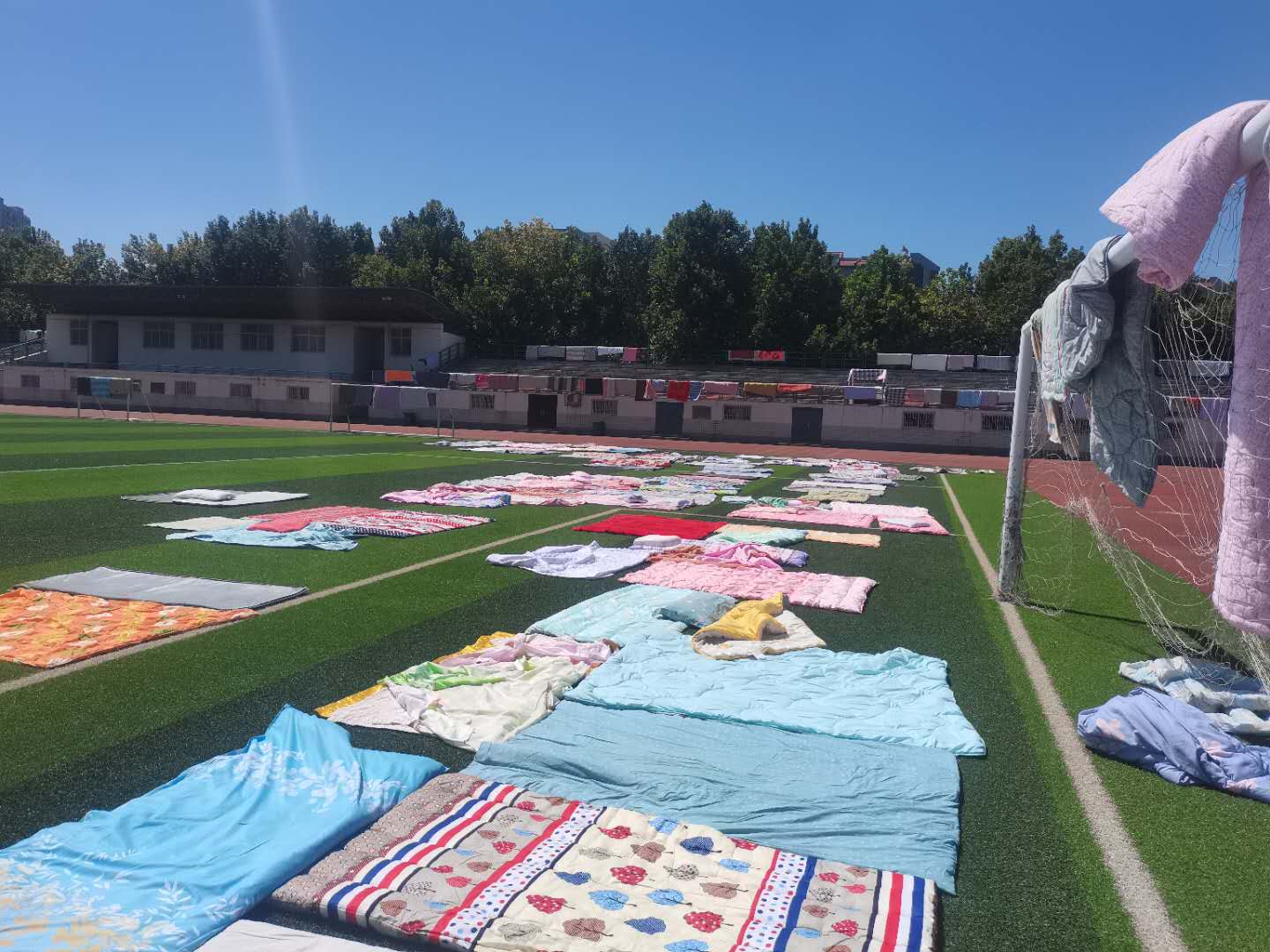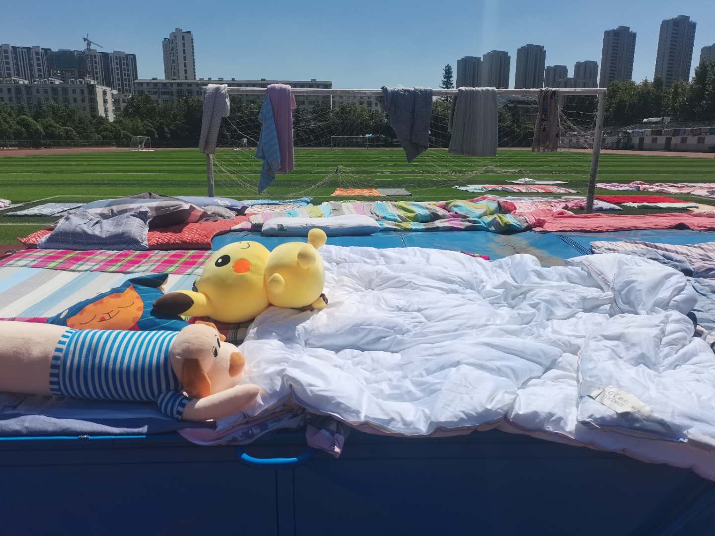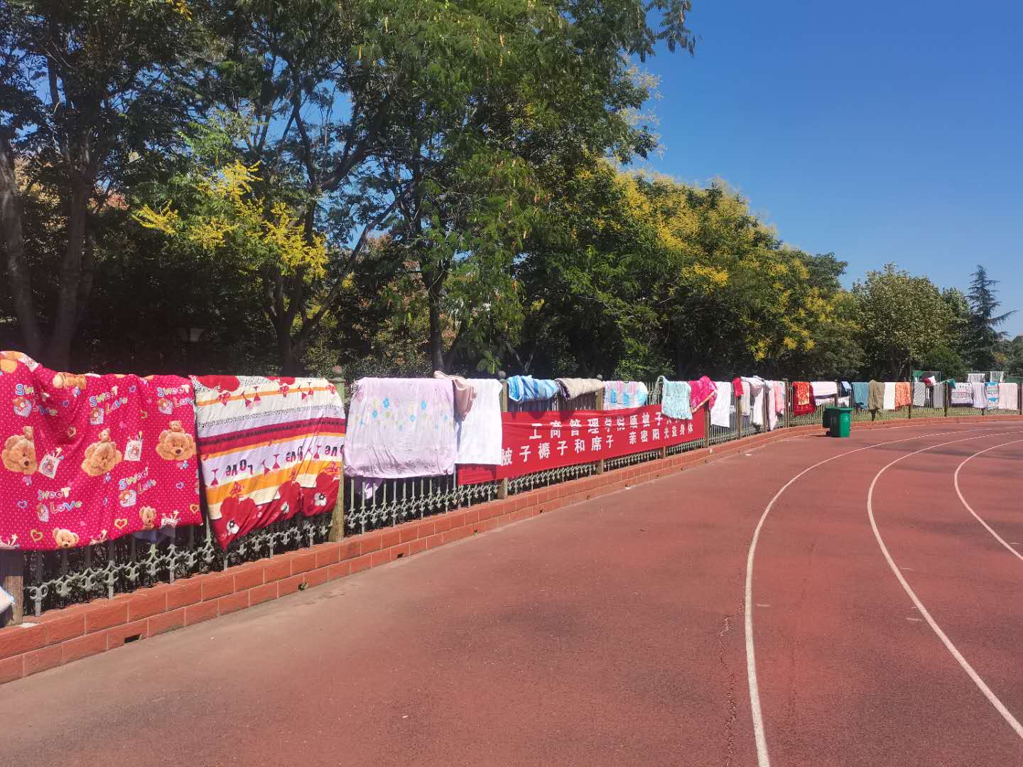 由于长达半年多的无人看管,很多学生的被子褥子和席子都严重受到螨虫的侵袭,为了确保我院同学的身体健康,能入校后正常进行日常生活和学习,ok138cn太阳集团古天乐团委在院领导的号召和组织下,在全体学生中开展为期10天左右的“被子褥子和席子,亲密阳光益身体”晒被子大赛。学生们纷纷响应号召,入校后,第一时间打开封闭7个月的窗户,喷洒消毒后,纷纷将自己的被子、褥子、席子、衣服进行晾晒,阳台、树丛、运动场、铁栏杆上到处都是我院学生晾晒的被子,部分离宿舍近的树丛上还形成一位难求的局面,五颜六色的被褥在学校形成一道靓丽的风景线。