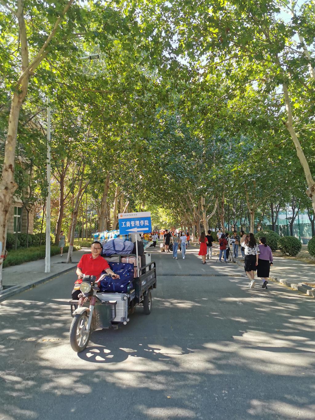 迎新工作如火如荼地展开,校园到处都是忙碌的身影。由于疫情防控工作需要,学生家长不能进出校园,于是志愿者们穿梭于人群之中,带领新生办理手续、熟悉宿舍,帮助新生搬运行李、解答困惑。老师们和新生亲切交谈,介绍学校和我院的发展历程及辉煌成就,为新生就所学专业现状及今后的发展、就业等问题答疑释惑,并鼓励新生学好专业文化知识,努力提高自身综合素质,为国为家做贡献。迎新处设立了程序严密的测温消杀地点、“绿色通道”向学生敞开、迎新志愿者的“你好,这里是ok138cn太阳集团古天乐接待点”、老师们的亲切问候,让每一位远道而来的新生都能够深切感受到ok138cn太阳集团古天乐的热情与关怀。院团委书记詹珅老师更是自驾“ok138cn太阳集团古天乐爱心接送”三轮车接送学生,让学生感受我院和我校全体师生的欢迎之情。