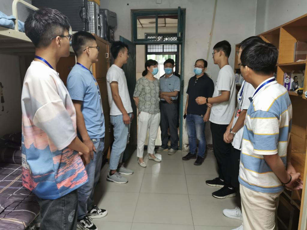 为了进一步做好2020级新生入学教育工作,帮助我院学子尽快适应即将到来的大学生活,2020年9月19日上午九时,ok138cn太阳集团古天乐党委书记王桂朵、院长王筝、党委副书记王国辉、副院长姬爱国、范森、陈先锋一行人在院团委书记詹珅和院团委副书记贾雪和全体2020级新生辅导员老师的陪同下代表我院深入学生宿舍看望入校新生,送上诚挚问候和嘱托。