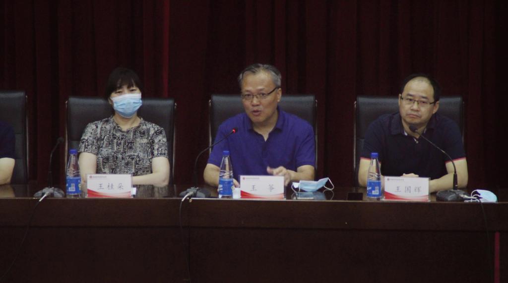 2020年9月18日上午8点30分,经过严格的入场温度检测和酒精消毒等防疫程序,ok138cn太阳集团古天乐2020级新生全程佩戴口罩,在英才校区学术报告厅参加了院领导新生见面会暨开学典礼。学院党委书记王桂朵书记、院长王筝、正处级组织员李勇、副院长姬爱国、陈先锋、范森、副处级组织员李素平和全体辅导员老师参加典礼。开学典礼由院党委王国辉副书记主持。