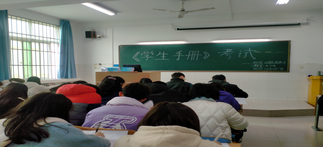 为配合推进我院学生诚信考试教育工作,持续加强学风学纪建设,切实提高学生的综合素质,营造浓厚的育人氛围,引导广大学生明确学习目标,增强学习动力,养成良好的学习习惯,激发学习主动性、自觉性,近日,我院于教学楼A302-315举办《学生手册》考试。