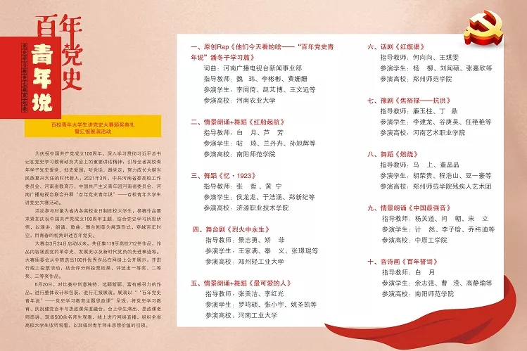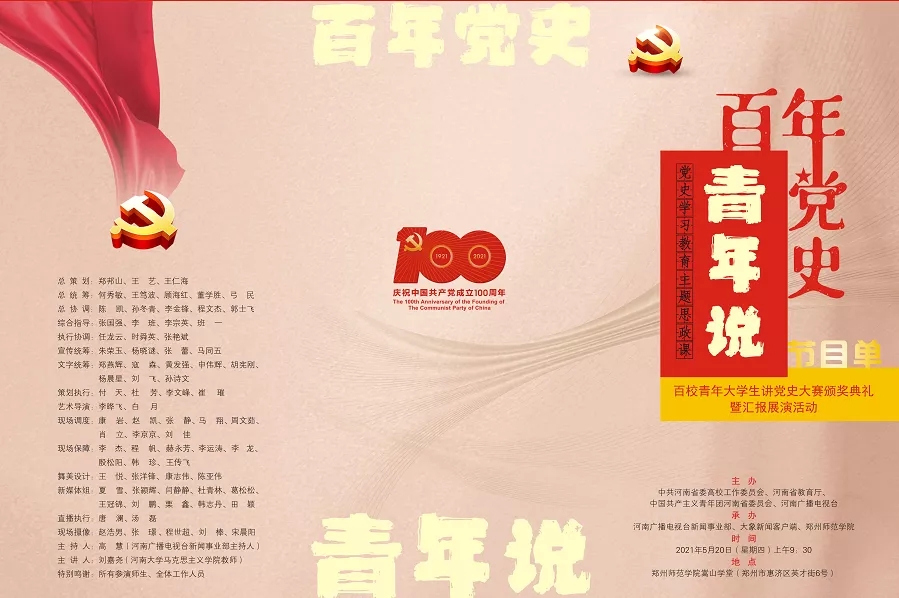 根据《中共河南省委高校工委办公室河南省教育厅办公室关于举办“百年党史青年说”——百校青年大学生讲党史大赛汇报展演暨颁奖典礼的通知》(豫高办〔2021〕12号)要求和和我院党史学习教育安排,5月20日上午ok138cn太阳集团古天乐党委组织学生2100多人通过在线观看的形式,参与了“百年党史青年说”——党史学习教育主题思政课直播活动。