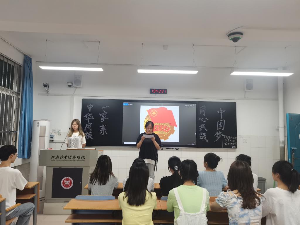 团课伊始,各班团支书组织同学们学习了中国特色社会主义民族团结政策,让同学们在熟悉国家民族政策的同时增强民族团结意识,激发学生们爱党,爱祖国,民族团结一家亲的情怀。之后,团支书向大家讲述了中华民族共同体意识是国家统一之基、民族团结之本、精神力量之魂,并以“怎样加强民族团结,共筑中国梦”为主题让同学们展开小组讨论。经过一番热烈的讨论,大家开始有序发言。20物业01的同学讲到我们要说有利于民族团结的话,做有利于民族团结的事,用自己的行动为民族团结事业添砖加瓦。20国商01的代表表示我们应该像爱护自己的眼睛一样爱护民族团结,像爱护自己的生命一样维护社会稳定,自觉做民族团结进步事业的建设者,促进者。代表们的发言获赞无数,团课在如潮般的掌声中接近尾声。